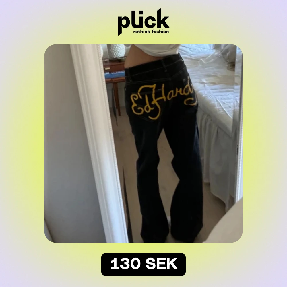 Inte riktiga ed Hardy! Dem är målade av mig🫶🏼 passar xs-s, går längre ner än till golvet på mig som är 165. Kontakta gärna innan köp. Kolla in min profil, finns massa nytt och mer kommer❤️