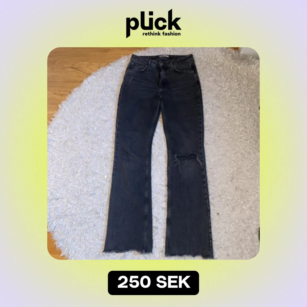 Säljer min grå svarta jeans i modellen Full length flare från Gina tricot💓 kommer inte till användning längre, bra skick.
