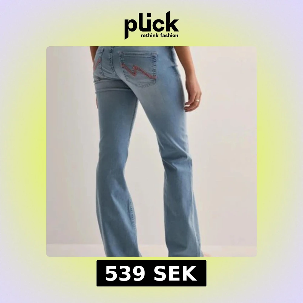 Snygga ljusblå bootcut jeans med rosa på bakfickorna från nelly i storlek 34. Nypris 700 💞