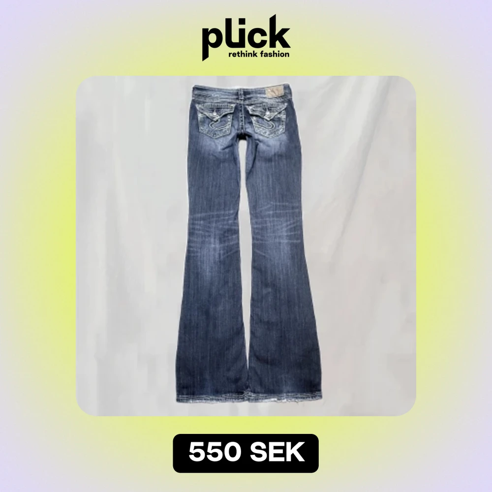 Midja:73,5 innerben:85 Jeans med detaljerade bakfickor. Storlek w26 med långa ben. Något urtvättade i materialet. Många nötningar skulle jag säga är del av design, vissa kan tillkommit av ålder. Sömm i skrev. Något nötta fotändar. Överlag bra skick🤍