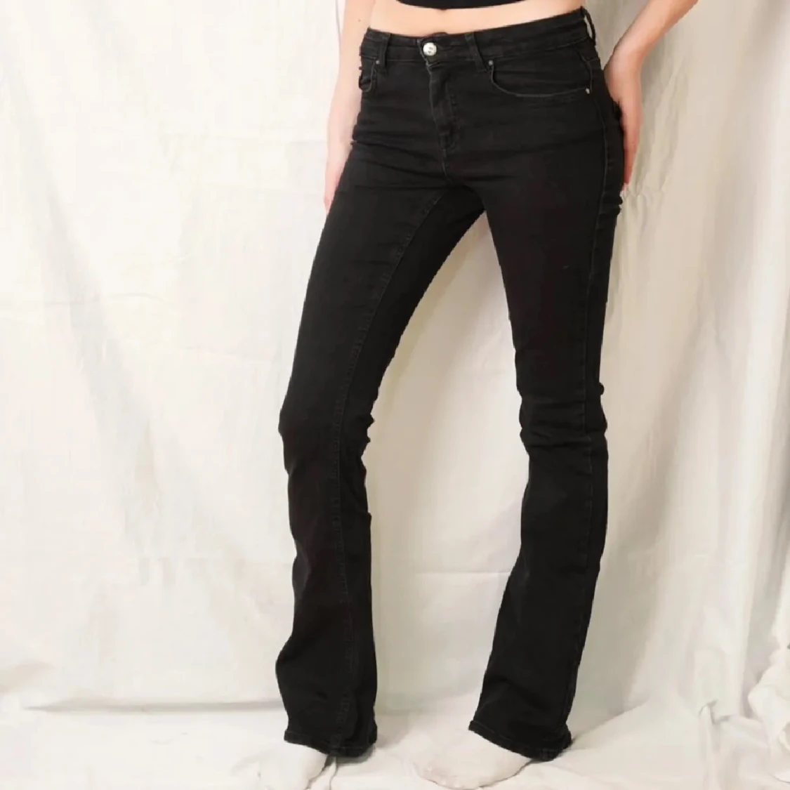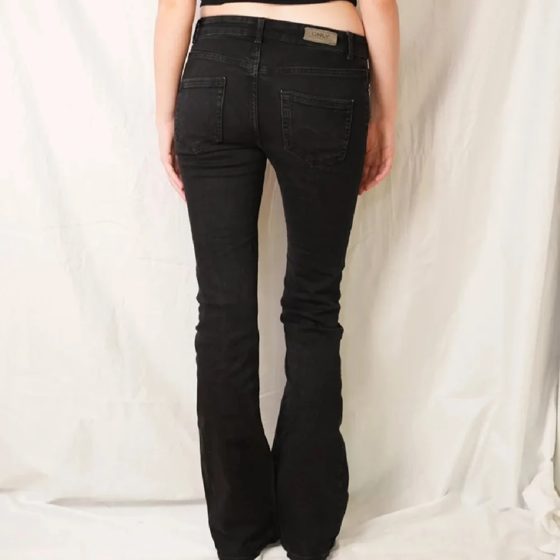 Skitsnygga utsvängda jeans ifrån only! Säljer då de tyvvär va för små för mig. (Lånade bilder, hon på bilden är 175cm lång och bär oftast S/XS. Jeansen är i storlek Ws L34.
