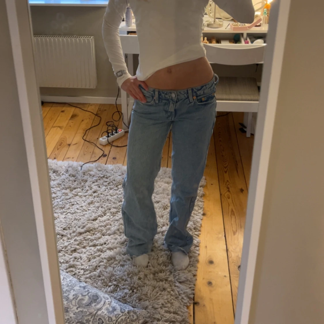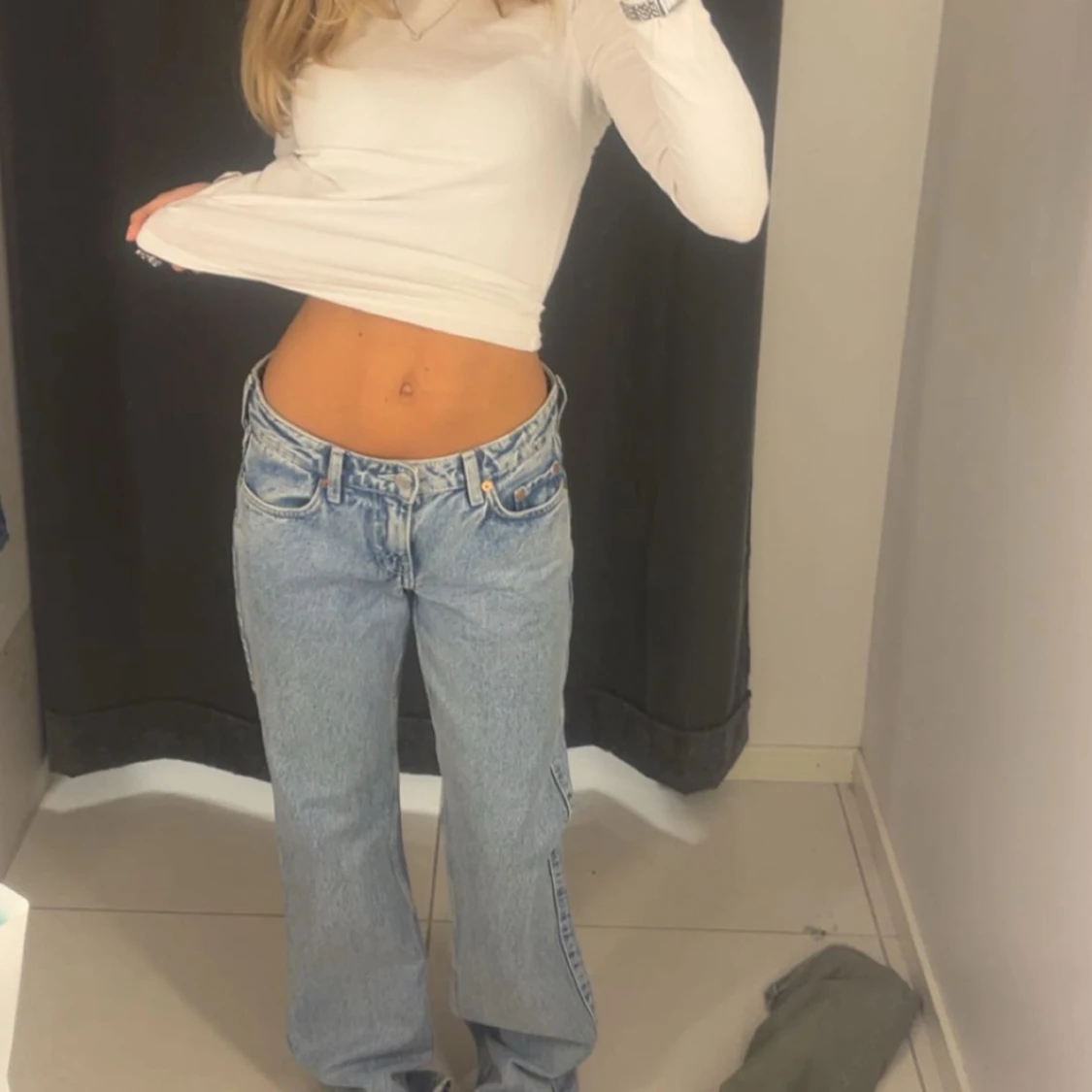 Säljer ett par baggy jeans från weekday.. Byxorna är i 32 men dom är avklippta längst ner så passar 30-32, själv är jag 160 och dom passar perfekt. Skriv för fler bilder eller frågor! Postar oftast samma dag