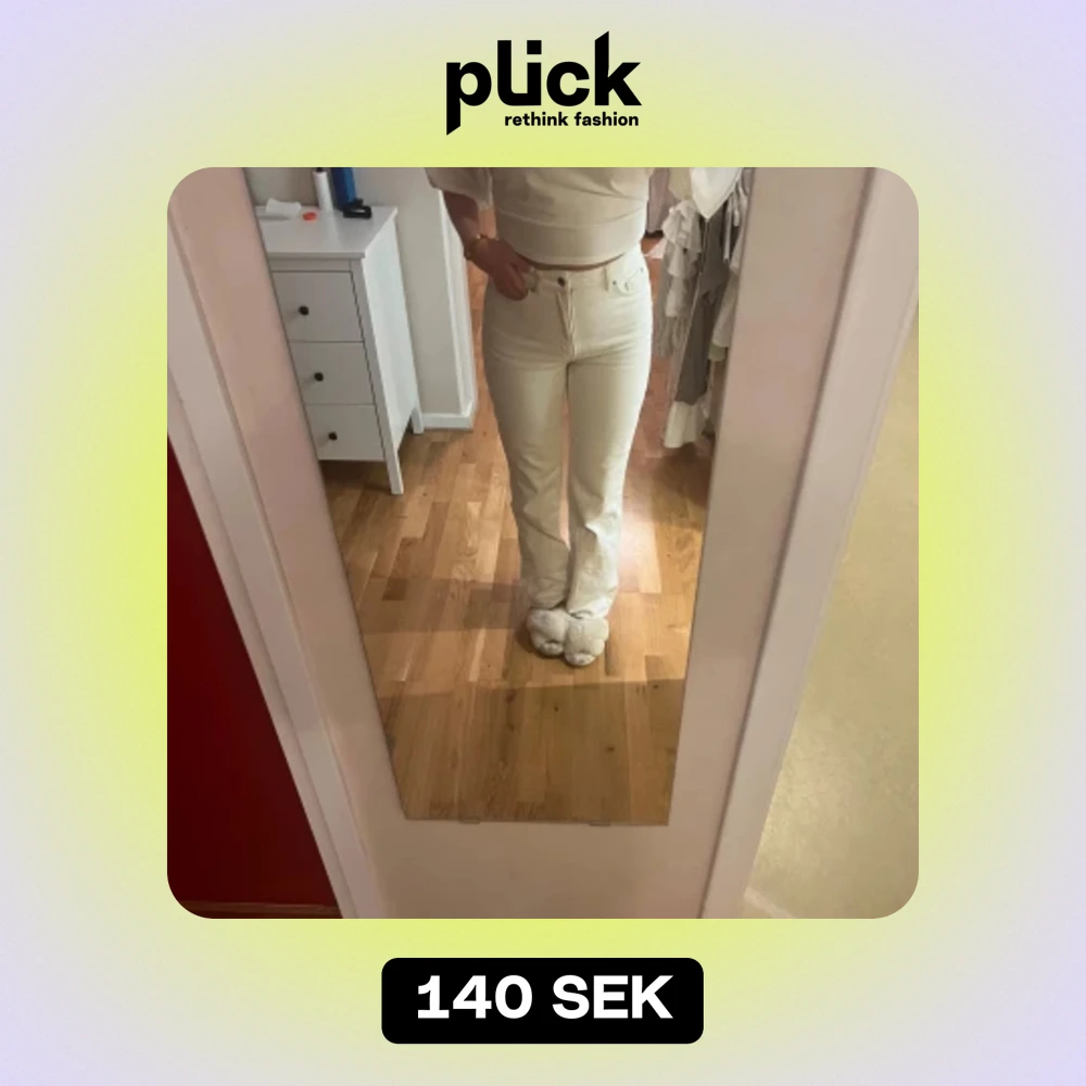 Skitsnygga jeans från HM. Sitter jättefint men används inte längre tyvärr. Cream vita i färgen. Pris 140kr⭐️