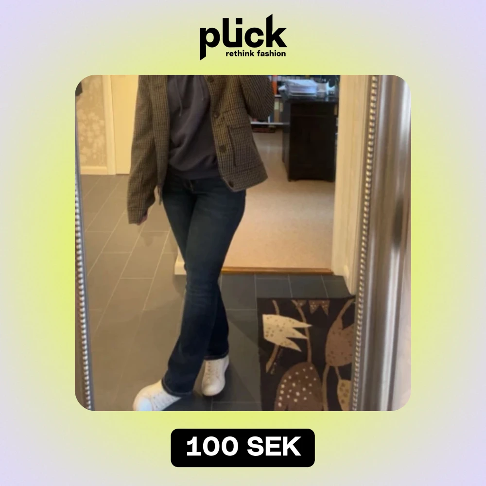 Säljer mina mörkblåa boothcut jeans ifrån Zara i storlek 36, sitter jätte skönt på. Skriv för fler bilder🩷nypris 600