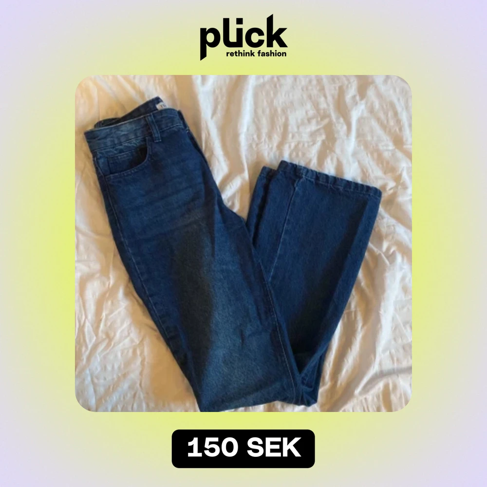 Märkblåa bottcut jeans köpte på secondhand. Säljer pga de är för små, högmidjade