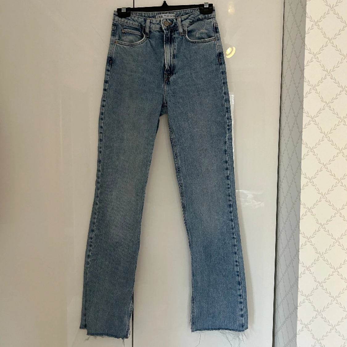 Fina jeans från Zara i storlek 34, använda ett fåtal gånger. Det är även en slits nertil på jeansen. Fint skick!💙
