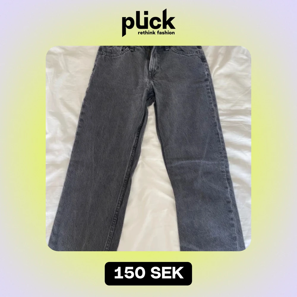 Grå svarta jeans i storlek 34, från HM, model: straight, väldigt bra skick använda ungefär 5 ggr. Betalar inte frakten, men kan posta om man swishar först.