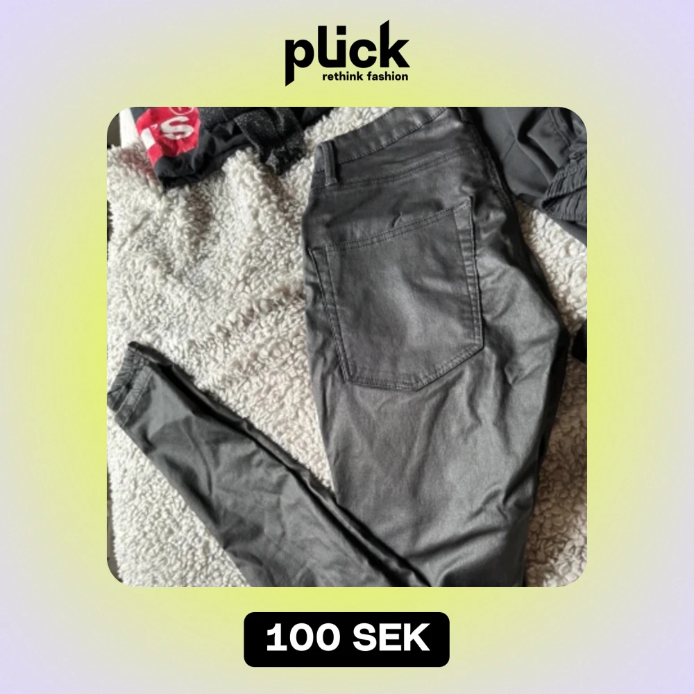 Svarta jeans i matt läder tyg typ. Väldigt stretchiga. Tyvärr för små för mig. Köparen står för frakten 🎀