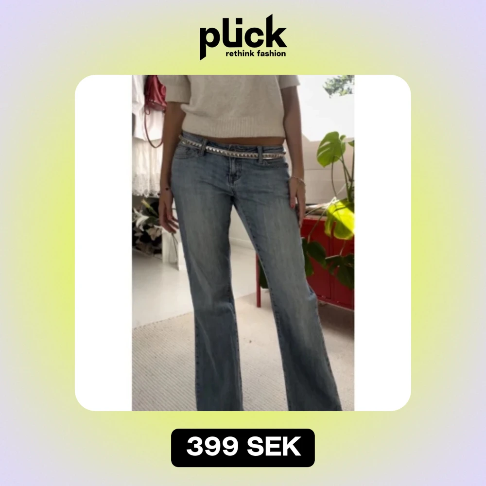 Snygga lite baggy lowrise bootcut jeans!! Midjemått: 82cm Innerbenslängden: 77cm Liten slitning( se sista bilden) men inget som man tänker på, kan nog lagas lätt💗💗