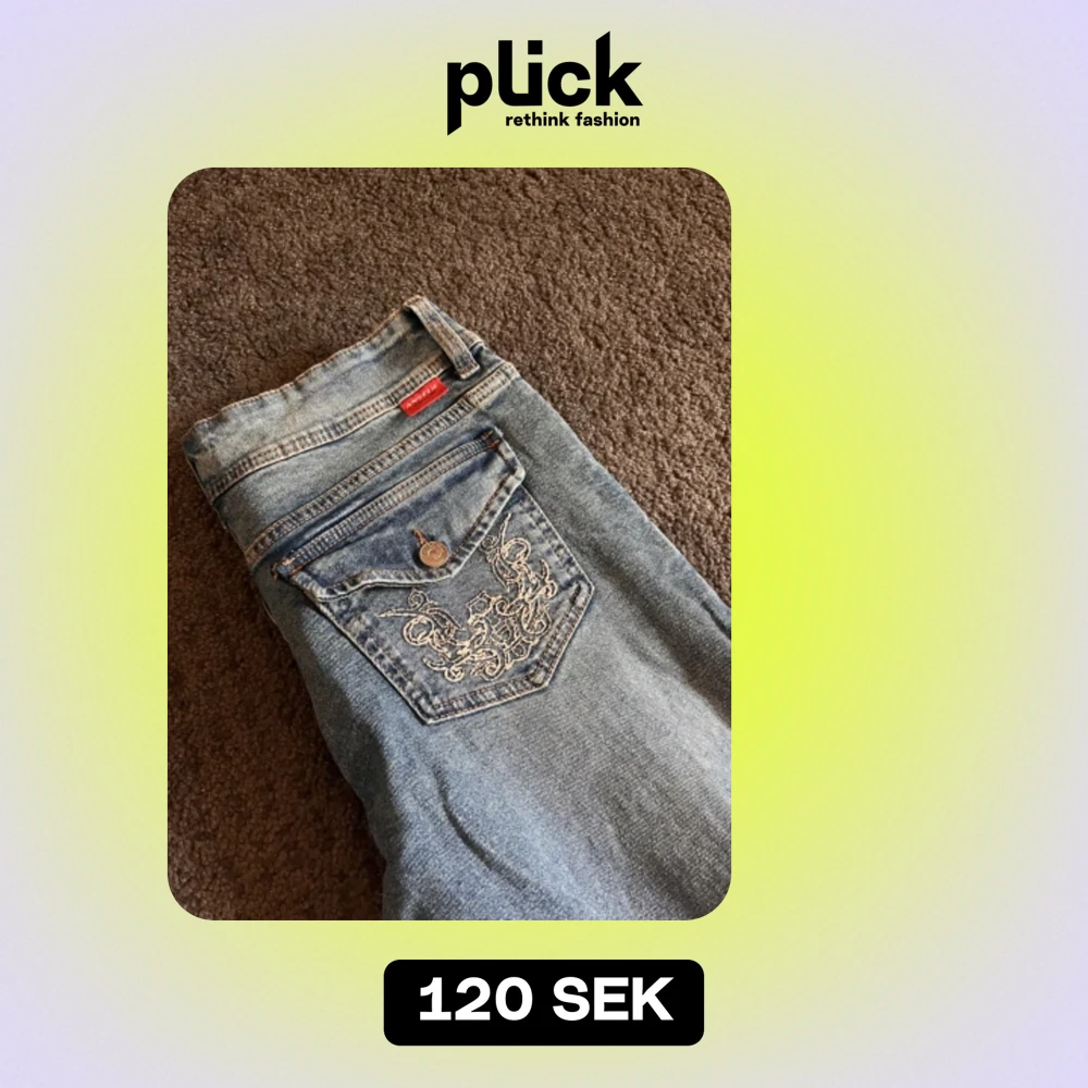 Jättefina jeans från Hm med fina detaljer på båda bakfickorna!! Säljer då de inte passade mig så bra