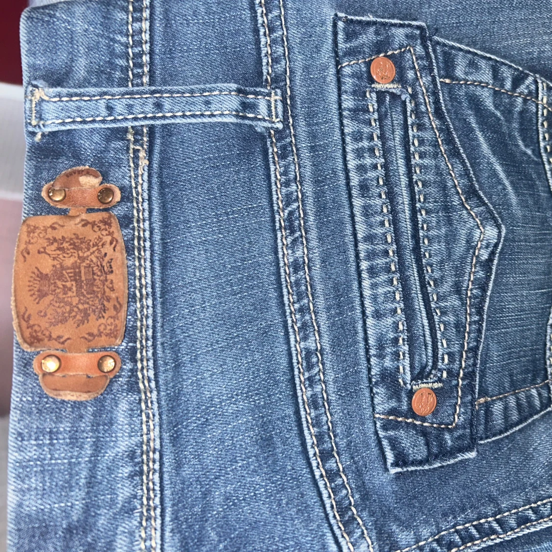 Snygga blå jeans från Phildar med dekorativa sömmar. Super coola som jag önskar jag kunde ha, men de är lite för korta för min smak (är 175 cm). Mäter man från insida lår och ner är de ungefär 68 cm