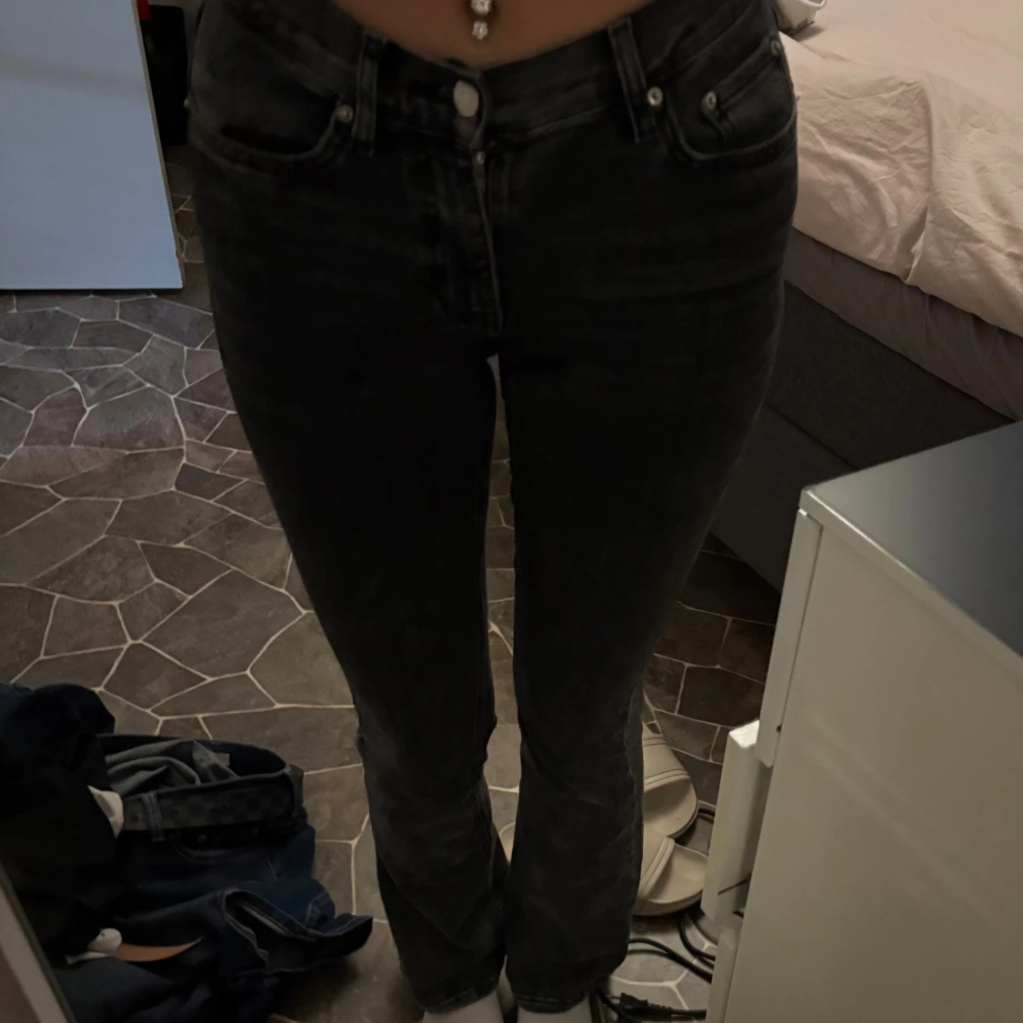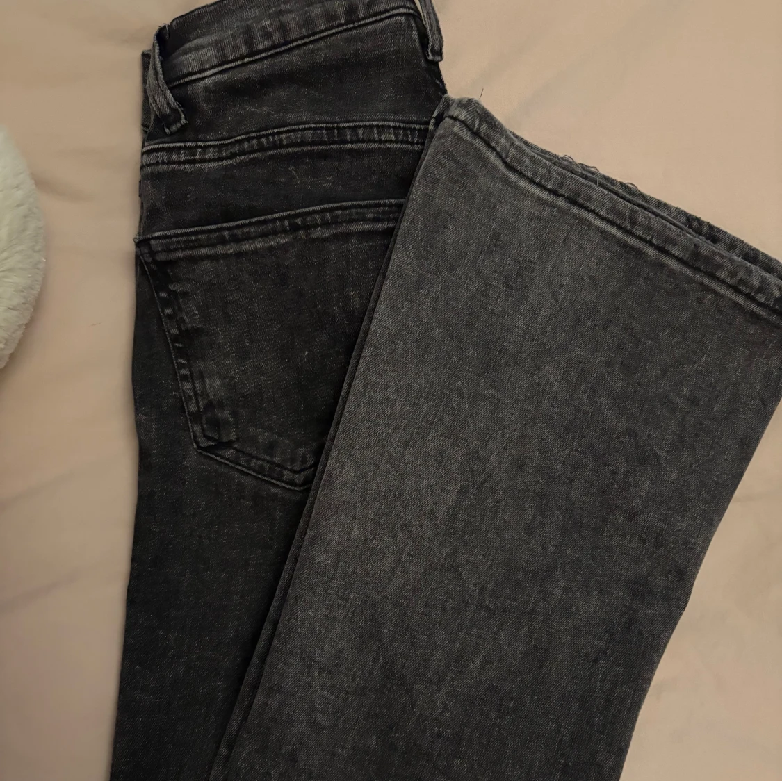 Säljer ett par svarta jeans med bootcut passform och lågmidja.
