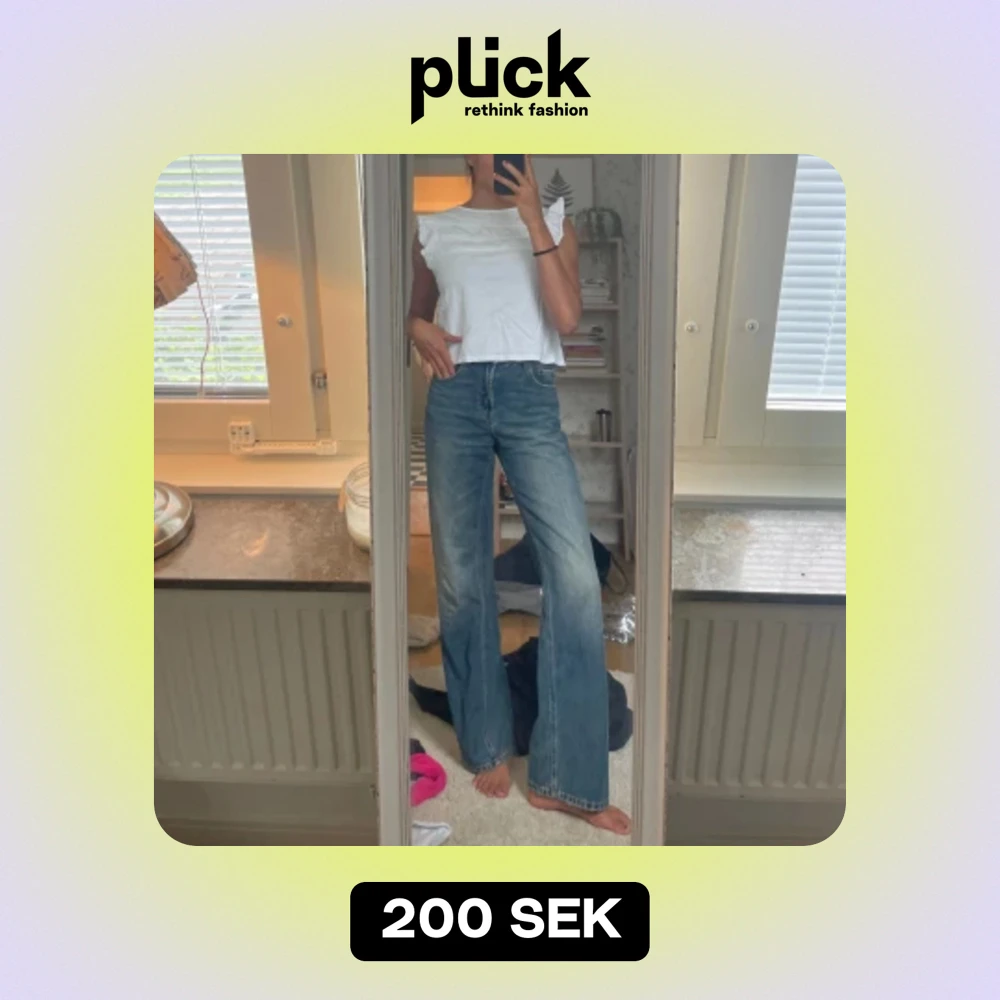 Fina blåa jeans! Jag har använt de en gång. Jag är 174 cm lång.