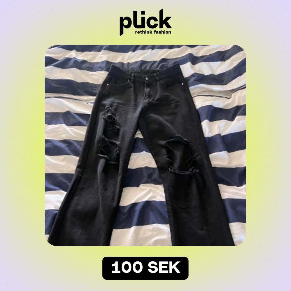 Svarta jeans med hål på knäna och låren från shein. Bra skick använt fåtal gånger:)