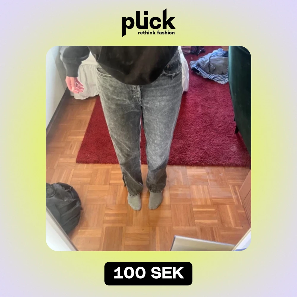 Jätte fina gråa midwaist/highwaist jeans från H&M med slits. Jag är 178 cm lång och dom är rätt så långa på mig. OBS. Bild 5 visar att dom har lite textur.