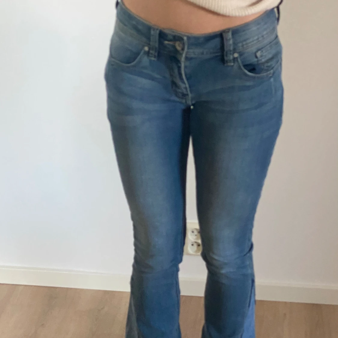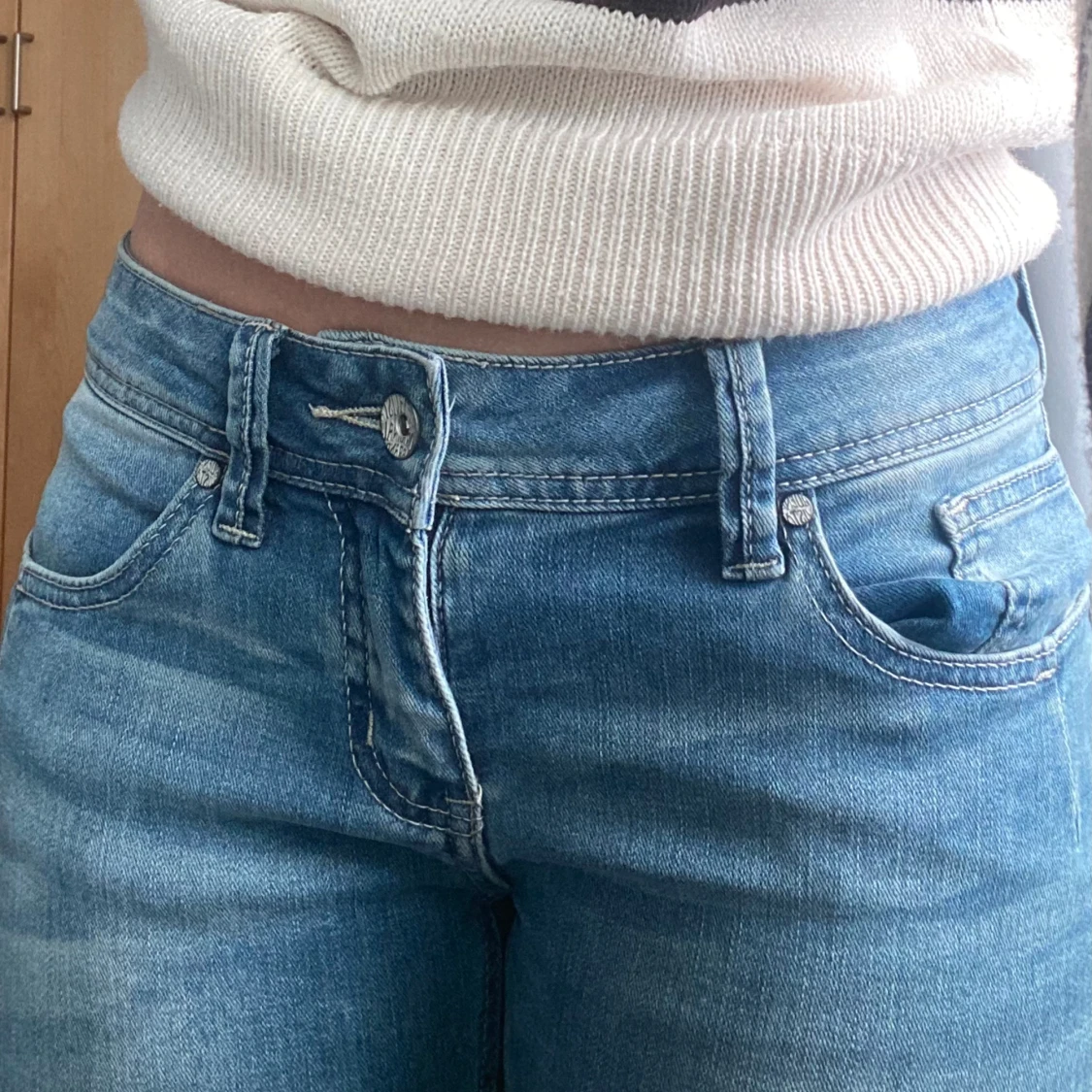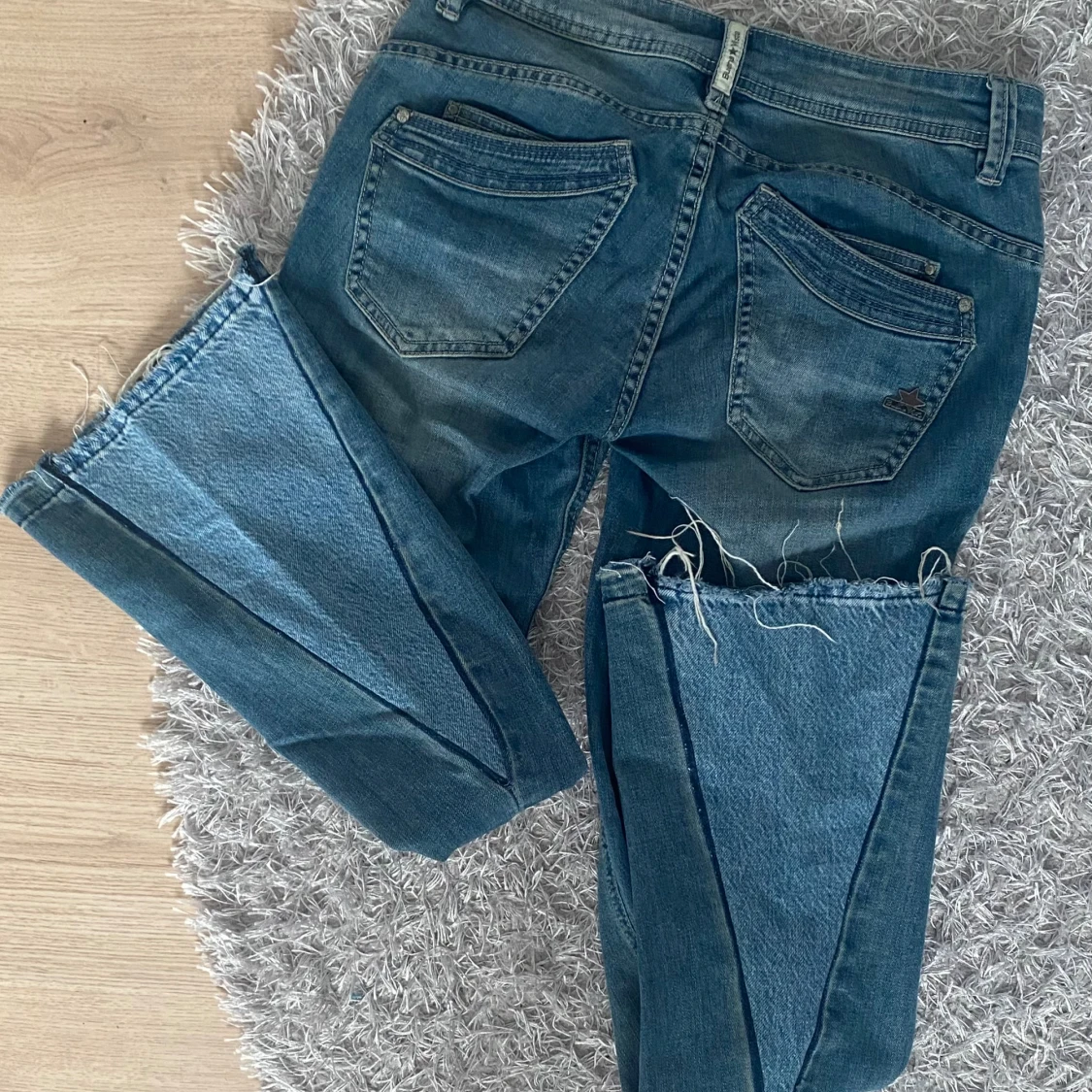 Jeans som jag sytt om från skinny till bootcut. Använda få gånger och i jättefint skick. Midjemått tvärs över är 36 cm och innerbenslängden är 78 cm.💙