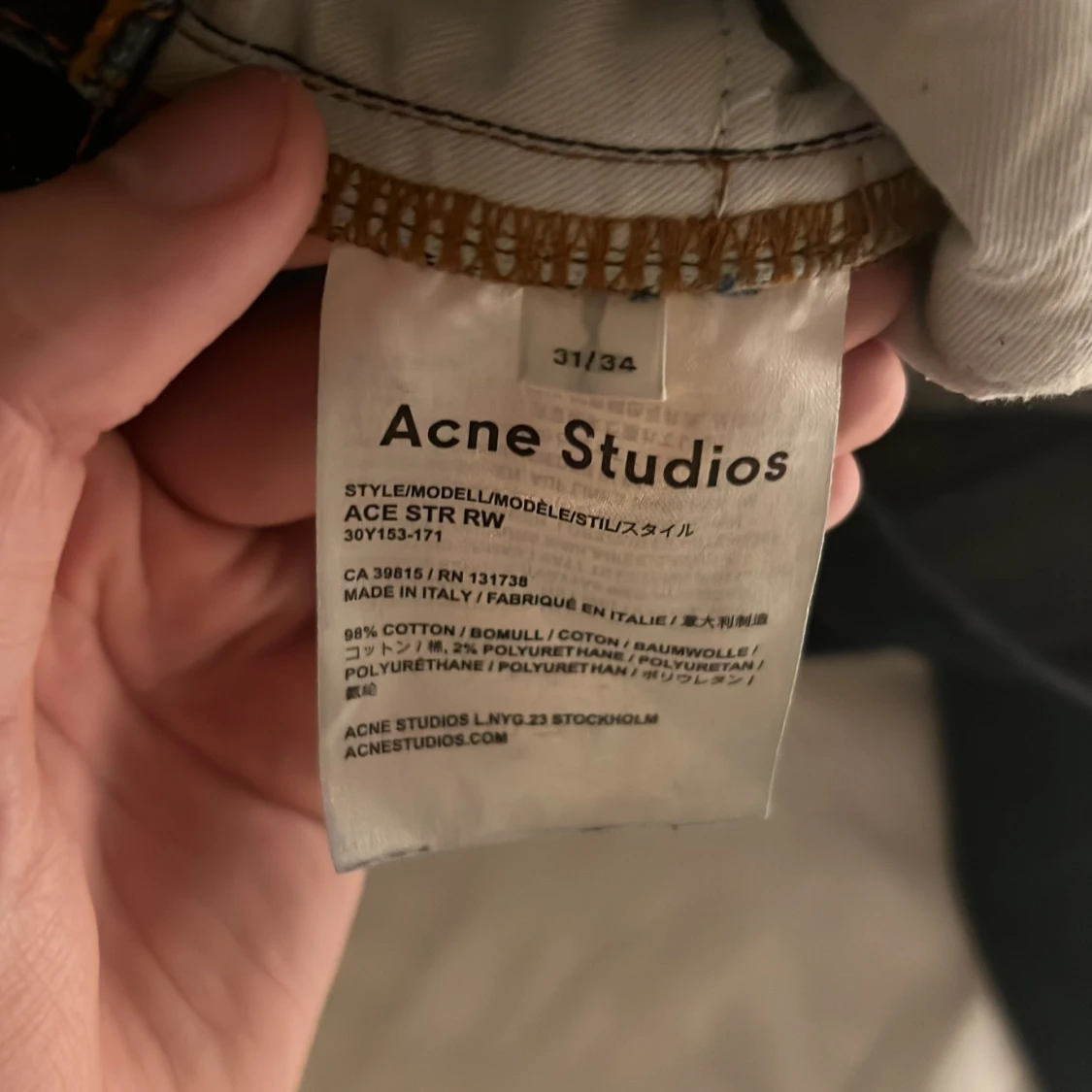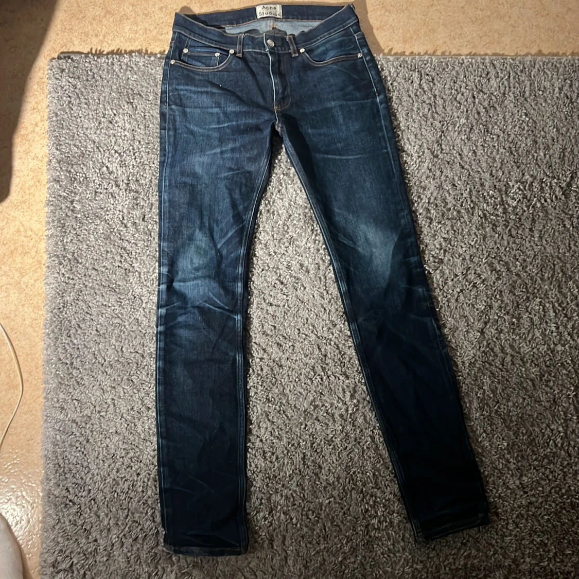 Säljer ett par snygga Vintage Acne Studios Ace STR jeans i mörkblå tvätt. Storlek 31/34 men skulle säga de sitter som 31/32. Modellen är slim med raka ben, bra skick förutom att man ser lite användning, men inte när de används. Inga defekter eller så. Säljs för 400kr nypris runt 1600kr. Priset går att diskutera. Kontakta mig om du har frågor👍🤗