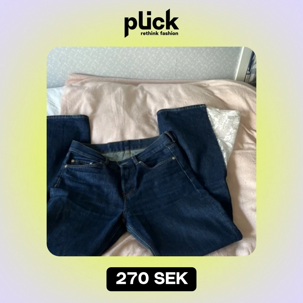 Säkjer dessa fina mörkblåa jeans från arket, där jag har sytt själv på spets för att få de mer bootcut🌸 De sitter inte som jag vill ha de och därför säljer jag de! Vill ni ha bättre bilder är det bara att skriva☺️