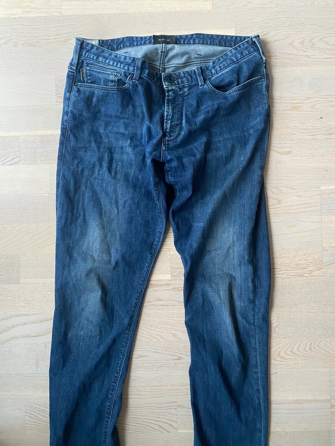 Blå emporio armani jeans i storlek 33/34 (us 9.5). Ej använda på 2 år och är fortfarande i bra skick. Köptes i NK Stockholm.