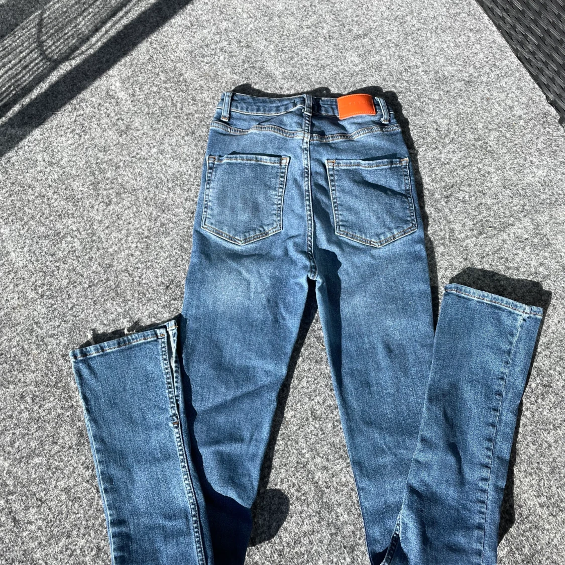 Jag säljer mina Odenim jeans i längd tall och storlek 36. De har en superfin slitdetalg vid benet. Detta är den mörkblåa färgen i denna modell och är sjukt fin till hösten. Jag köpte de för 1599 kr och jag är 170 och de är perfekt längd om du gillar att de ligger lite över skorna som referens.