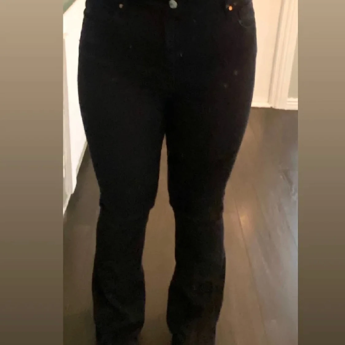 Svarta utsvängda jeans ifrån Bikbok. Modellen peachy flare bootcut. Nypris 600, säljer för 350 då dem typ är oanvända. Kanske använda 2 gånger. Strl L