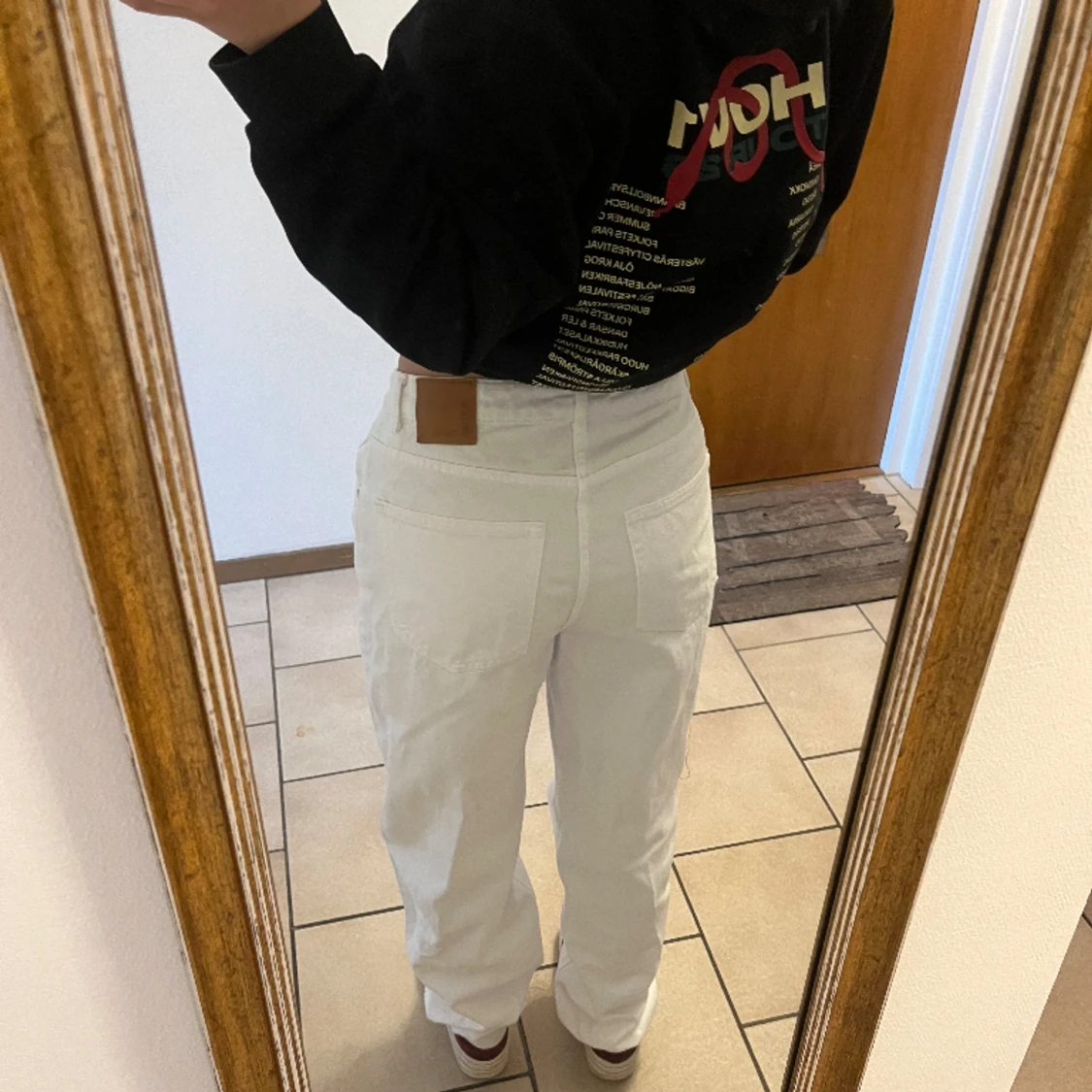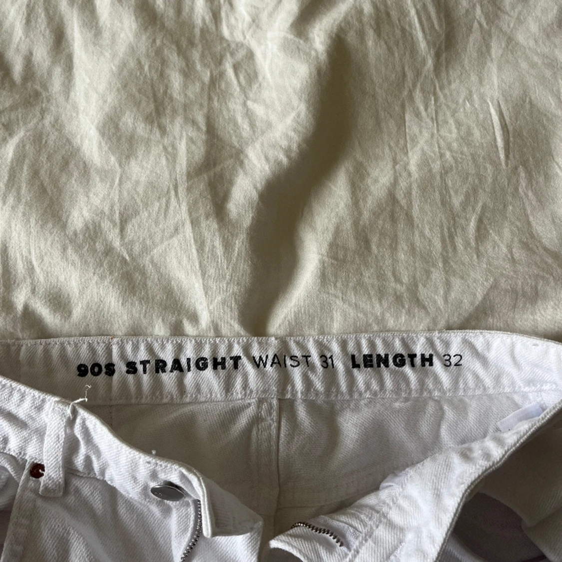 Vita jeans från BikBok ”90s straight” Waist: 31 Length: 32 Passar mig som normalt sätt har strl 36. Knappt använda så super fint skick! Midrise