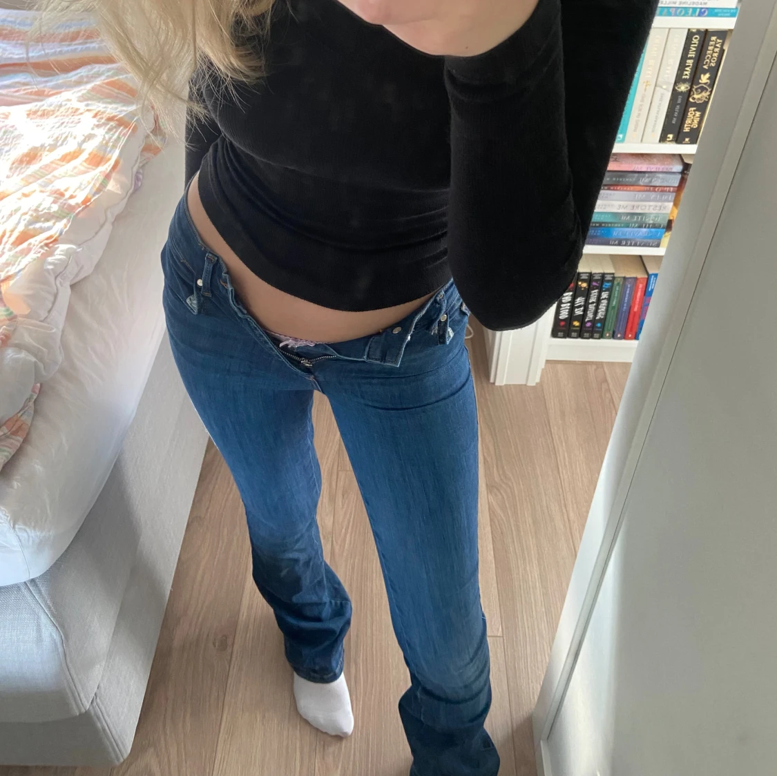 Lågmidjade bootcut jeans från BikBok. Jättefina men tyvärr för små på mig! Nyskick.