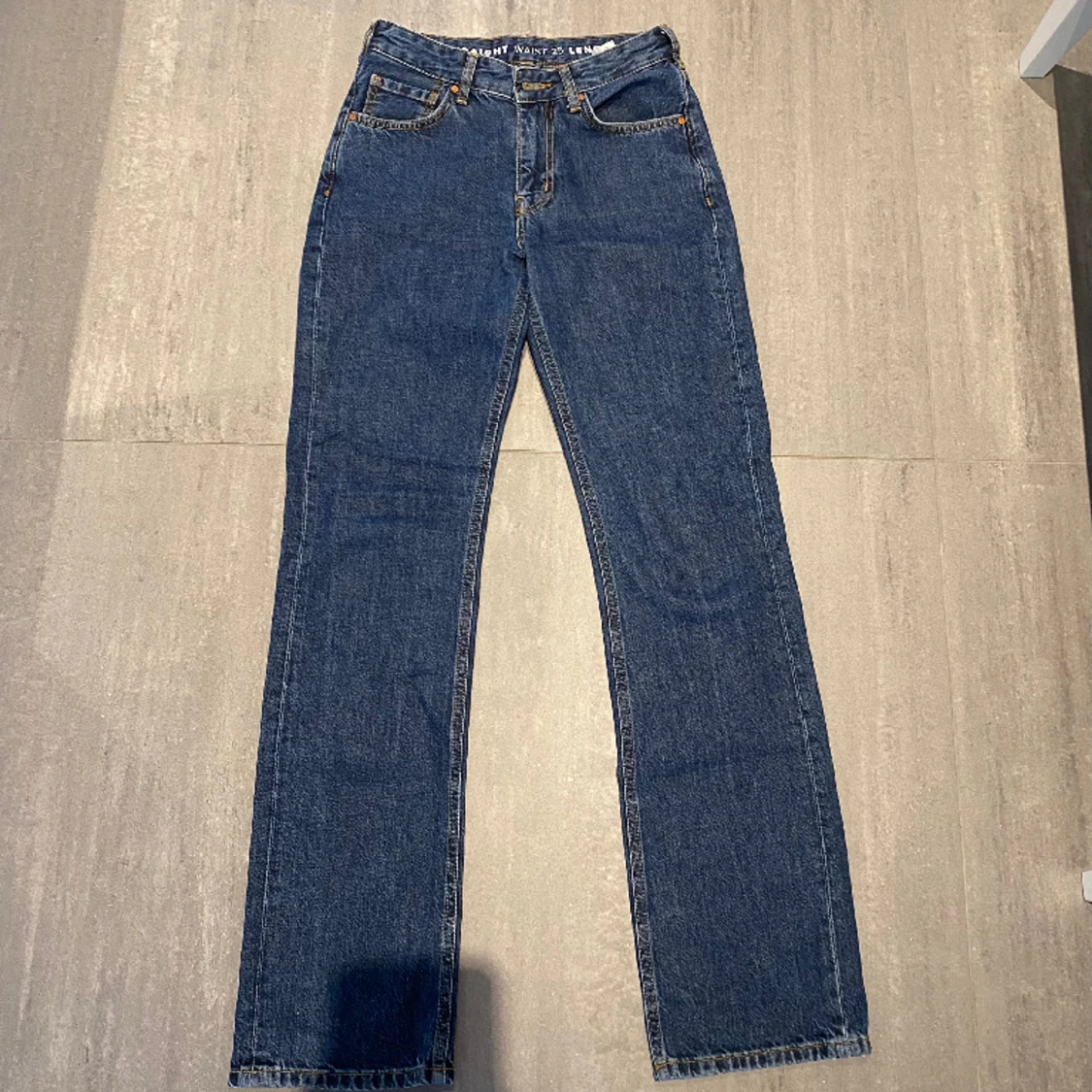 Jag säljer dessa low straight jeansen då de är för långa för mig och lite tajta. De är använda ett fåtal gånger så de är i bra skick. De är i waist 25 och length 32. Nypris 699, säljer för 300.