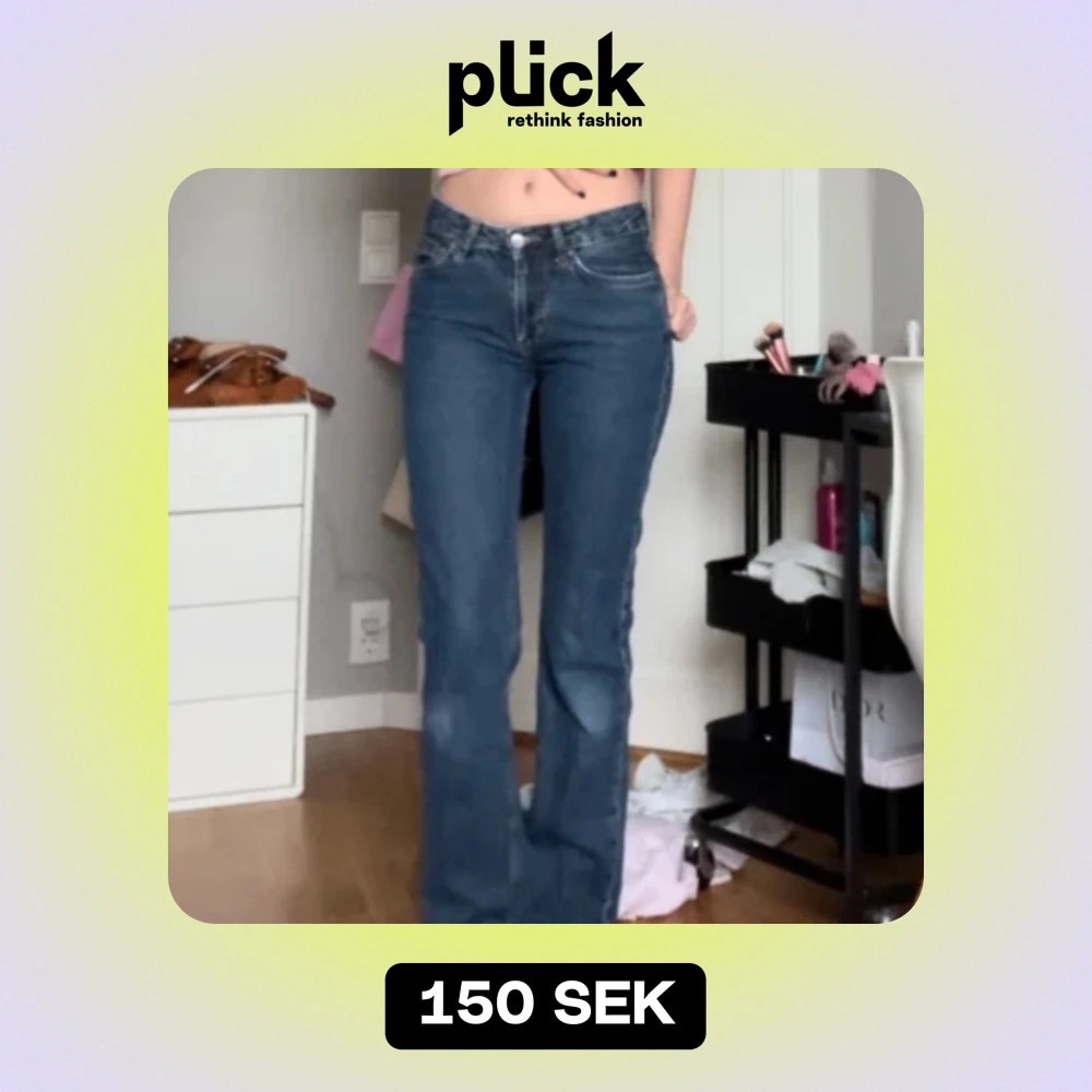 Midwaist skulle jag säga, men lågmidjade på hemsidan! Super snygga fast sitter för tajt på mig! Väl använda fast lite nedtrampade längst ner på jeansen💕