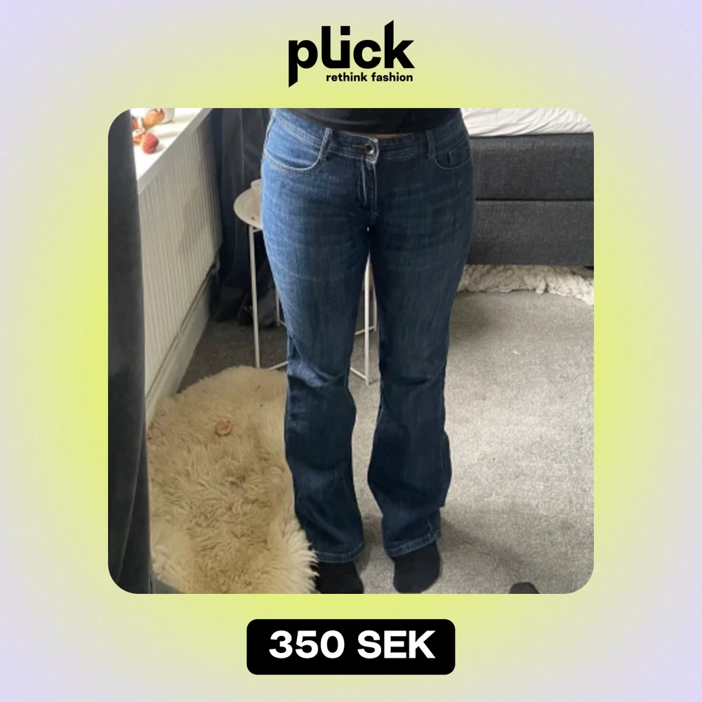 Blåa bootcutjeans med medelhög midja, väldigt skönt material och sitter bra, osäker på storleken men gissar på 38, kan skicka mått om det önskas