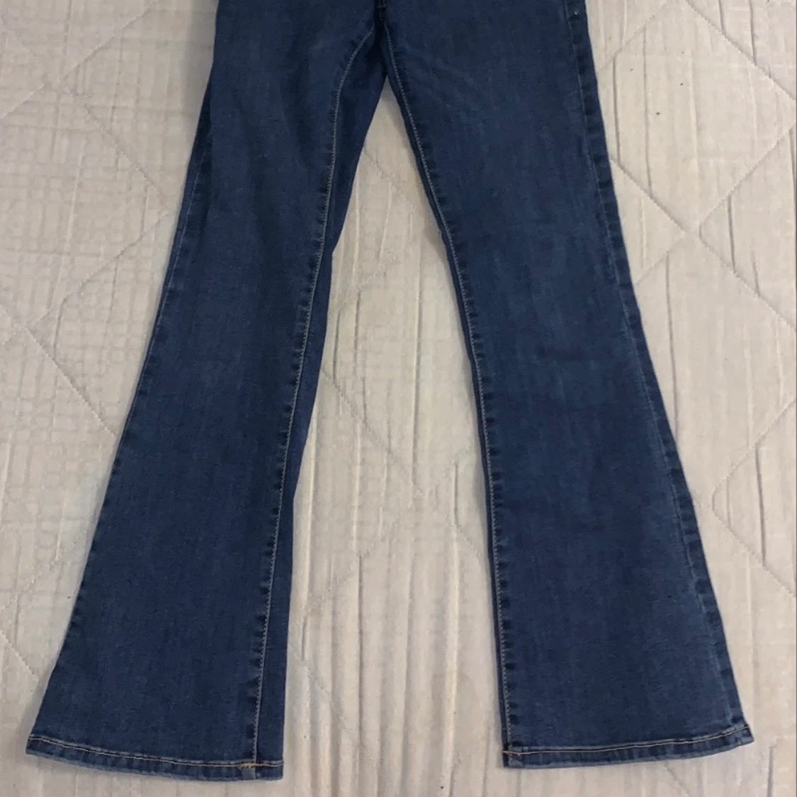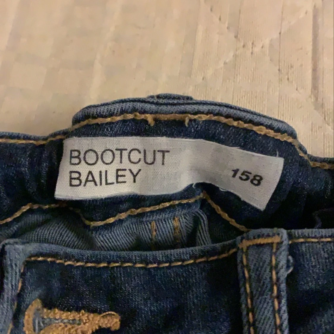 Mörkblå bootcut jeans i fint skick. Storlek 158 men skulle nog säga att dom kan passa nån storlek mindre också. Betala gärna med swish och möt helst upp i Linköping. ENDAST SERIÖSA KÖPARE!!!