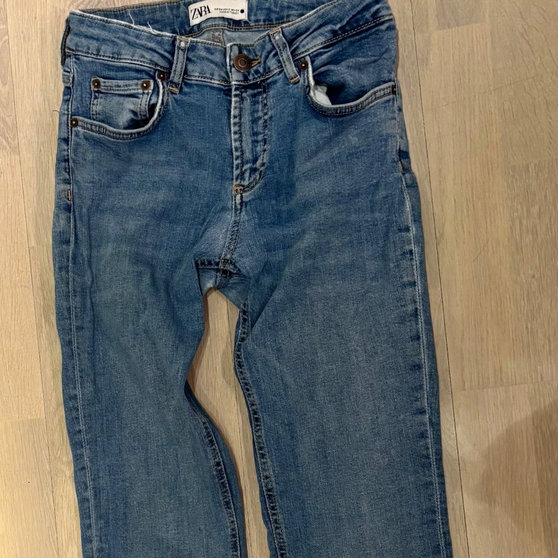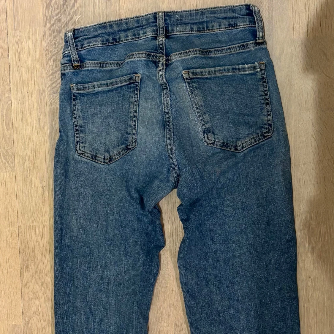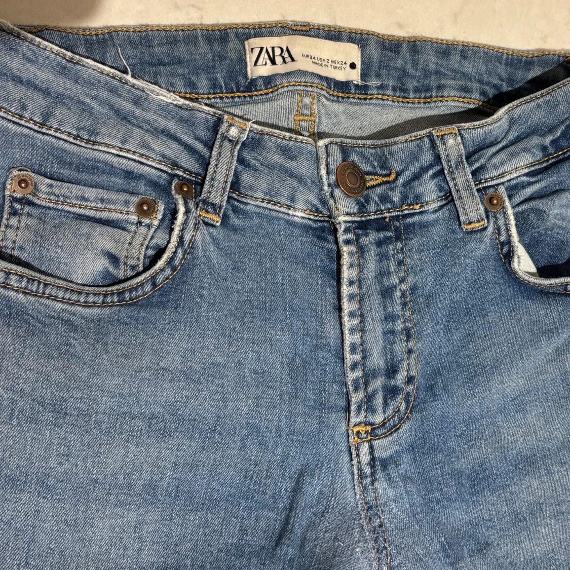 Lågmidjad jeans bootcut från Zara storlek 34. Slitningar finns längst ner på kanten.
