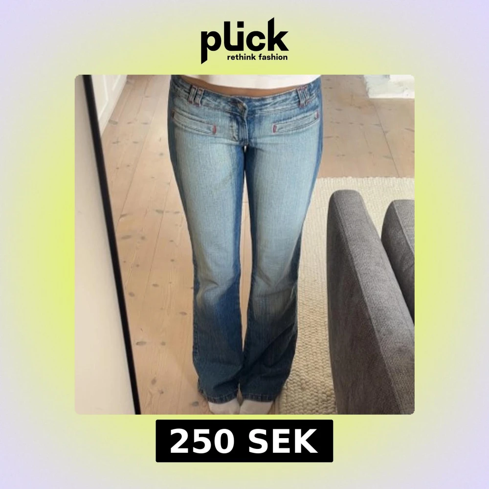 Snygga blå jeans från Red Sky med unikt broderi på baksidan. De har en bootcut-stil och låg midja, vilket ger en avslappnad look. Jeansen har också röda sömdetaljer och en klassisk femficksdesign.