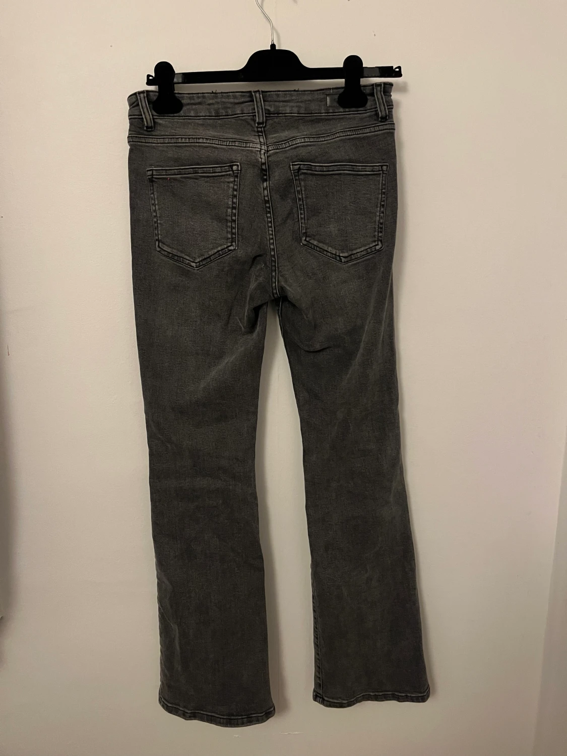 Mid high (även fast det står high) jeans. Gråa från Clockhouse i strl 40. Men skulle säga 38