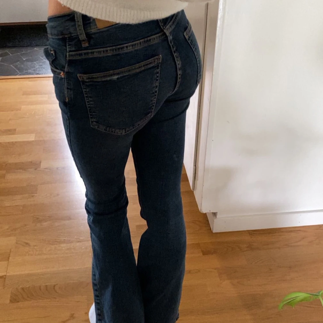 Sjukt snygga blåa jeans från gina tricot i klassisk bootcut-modell. Jeansen har låg midja, fem fickor. Använda fåtal gånger, skriv för funderingar❤️