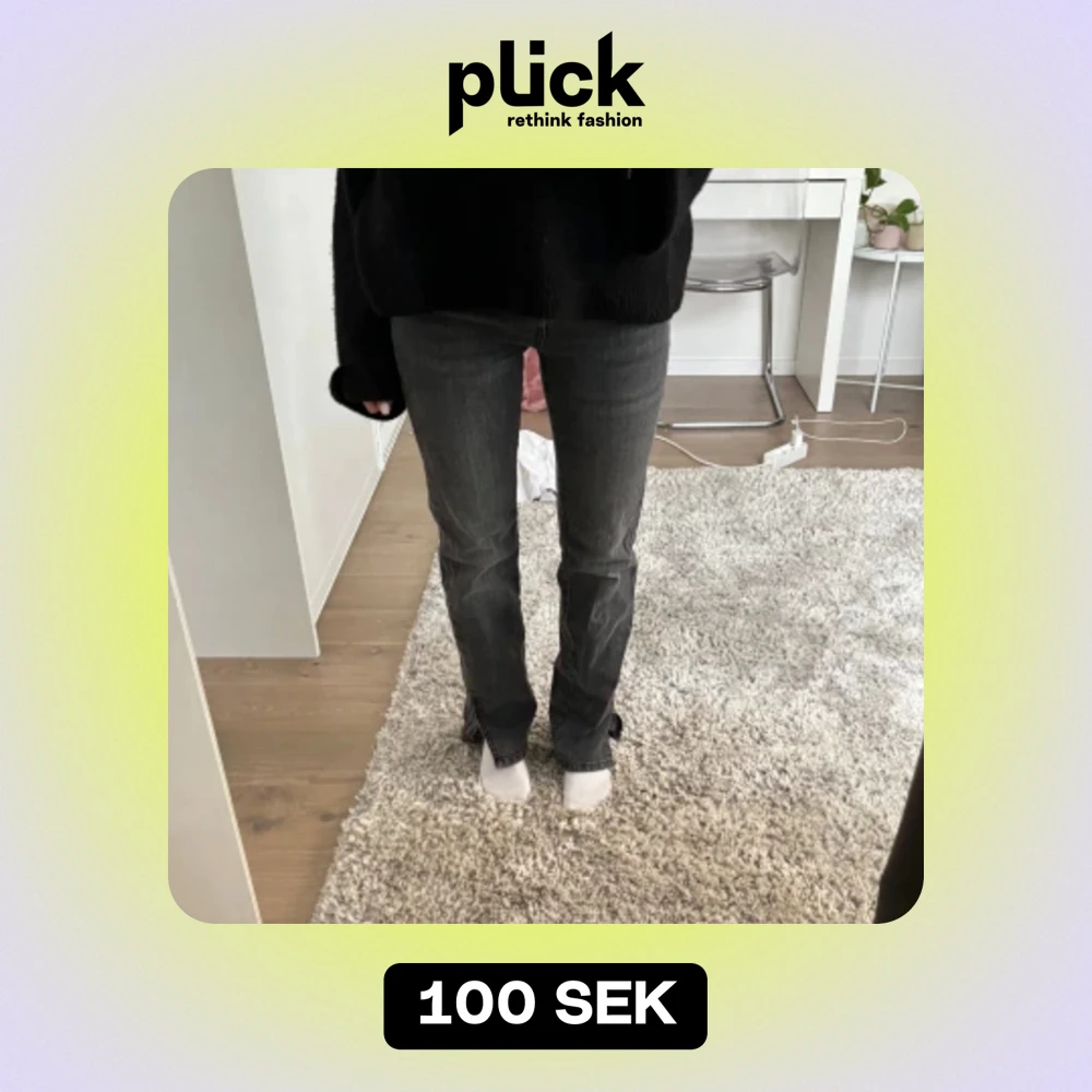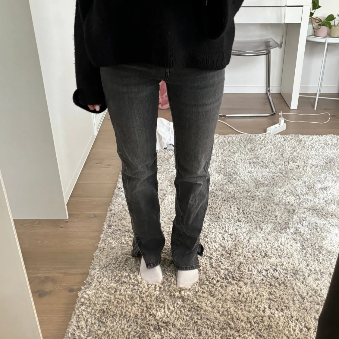 Gråa snygga jeans med slit🖤