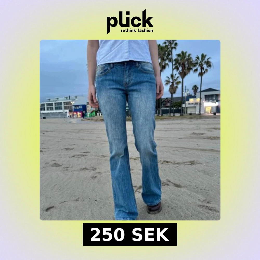 Säljer ett par blå lågmidjade bootcut jeans med ljus tvätt🩷