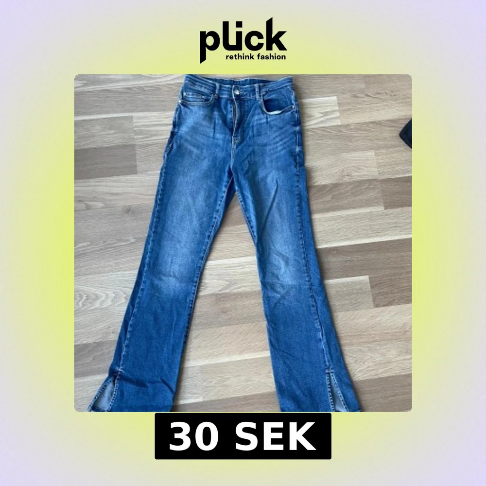 Snygga blå jeans från Bubbleroom med bootcut passform och slitsar nertill på benen. Storlek 40 men är mer en 36/38 då jag som har 38/40 inte kan ha dom