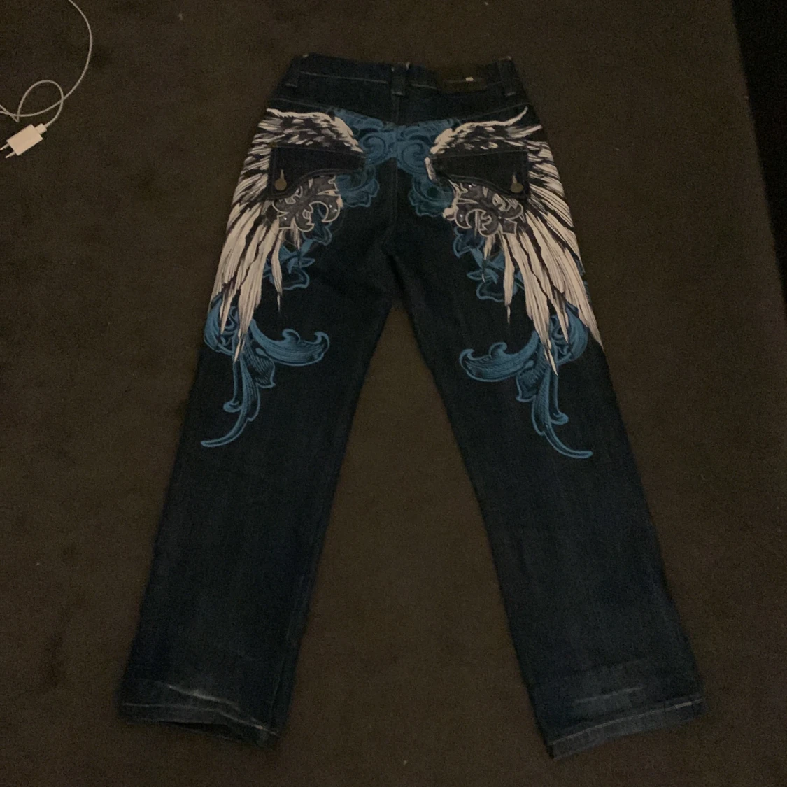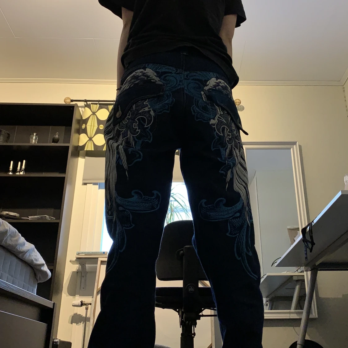 Rawblue jeans. De är något slitna längst ner, saknar en knapp - men för mig har det fungerat bra utan den. Något långa för mig som är 167 cm. De är 39 cm rakt över i midjan, innerbenet: 77cm Ytterben: 107 cm BARA SERIÖSA BUD!!