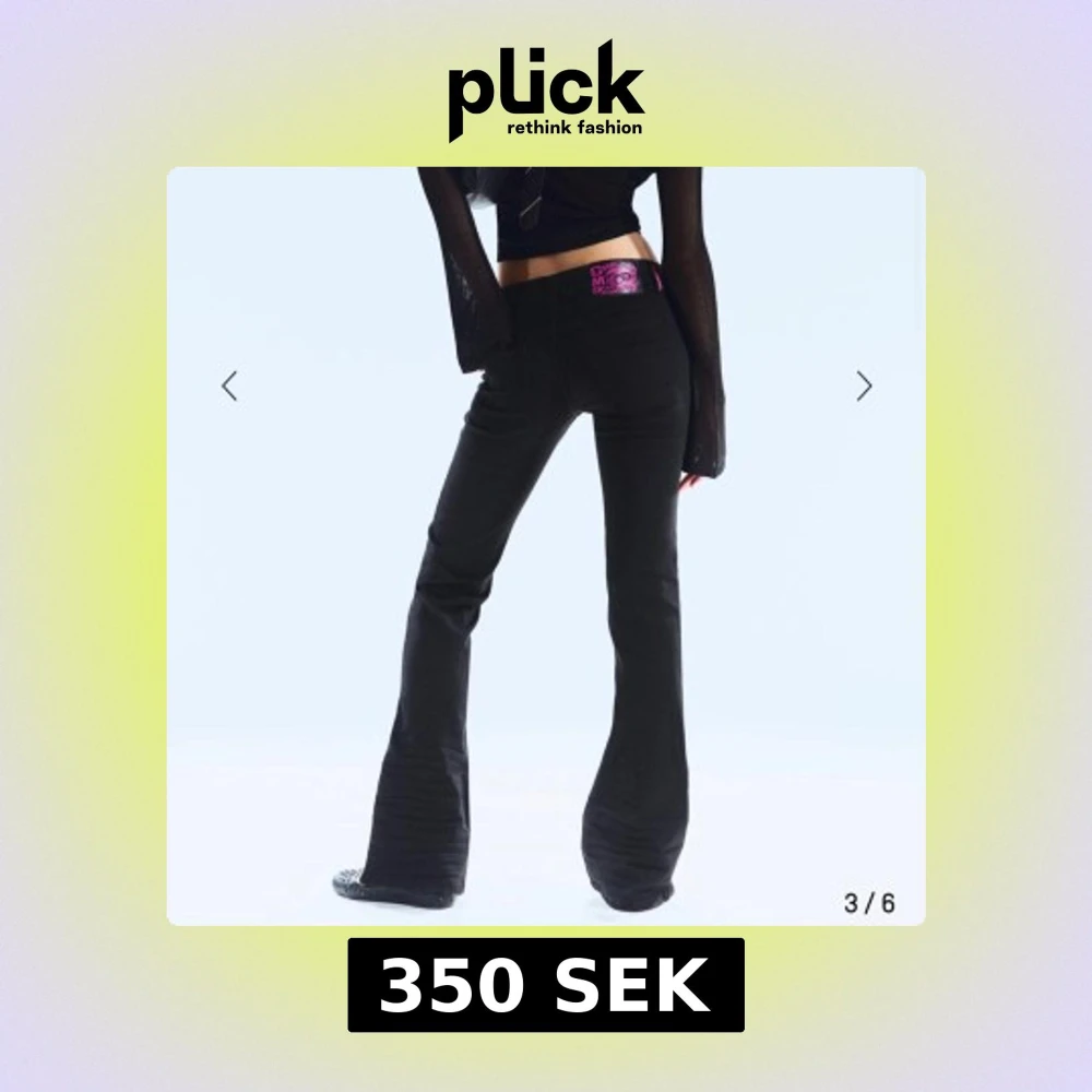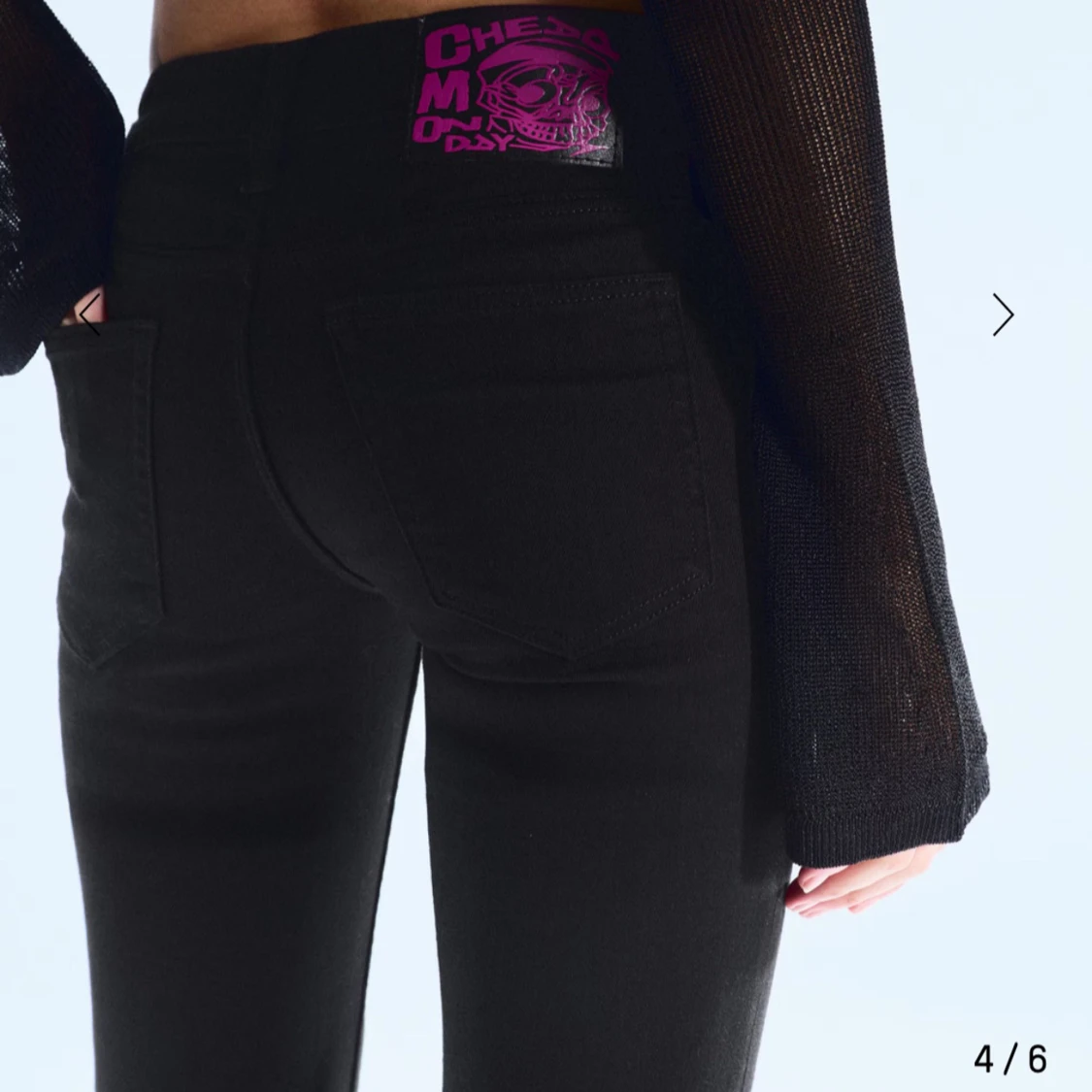 Svarta cheap monday jeans, med rosa detalj på lappen i bak, säljer då det är för korta för mig och blivit för små, uppsprätta längst ner men annars som nya.