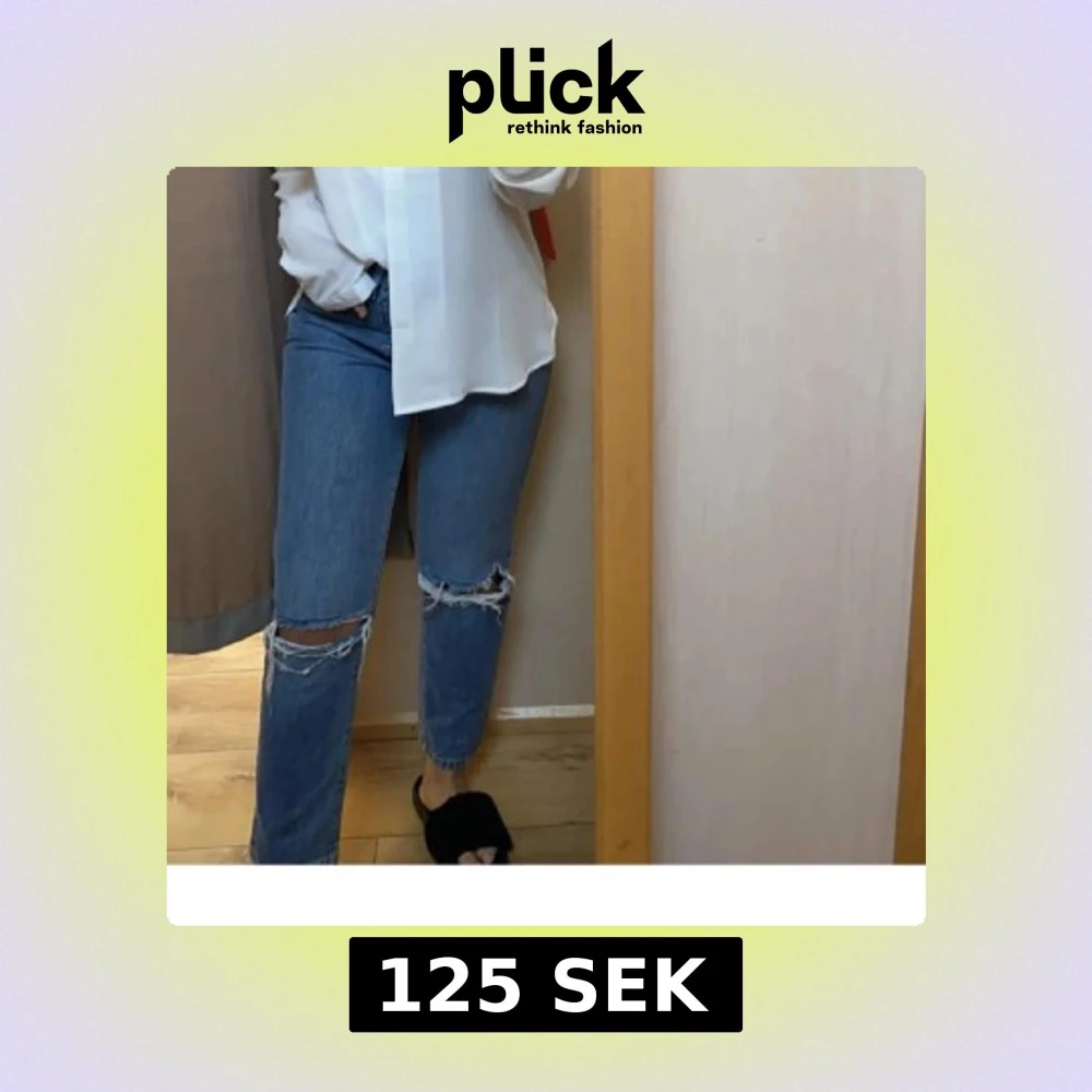 Snygga blå jeans med slitningar på knäna från BikBok. Stl. 28/30. Nypris 500kr. Sparsamt använda.