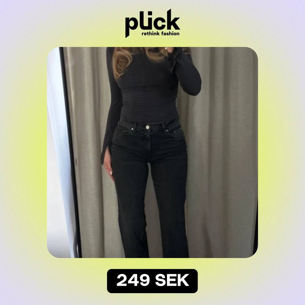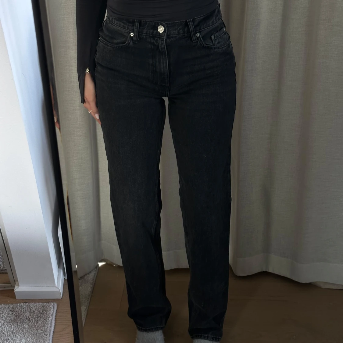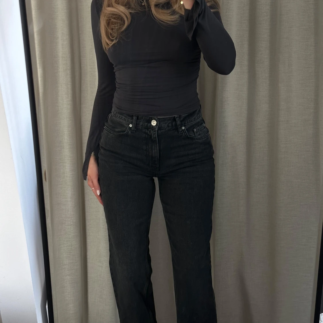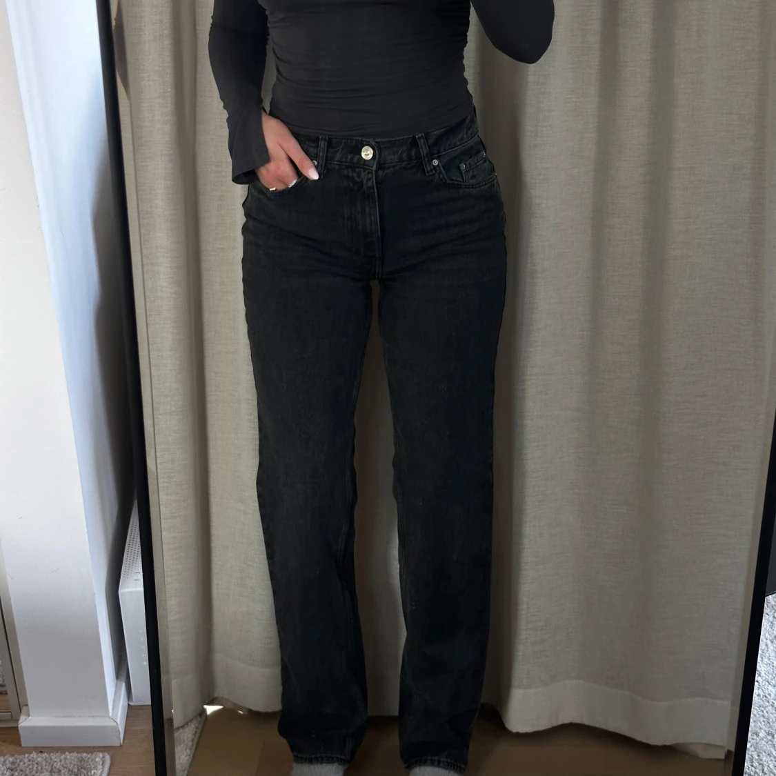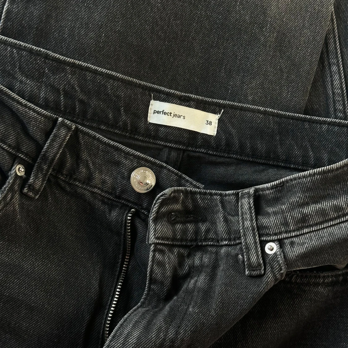 Jeans i en mörkgrå/svart tvätt från Gina Tricot, aldrig använda. Storlek 38, långa i modellen och passar mig som är 1,75 jättebra! 🤍