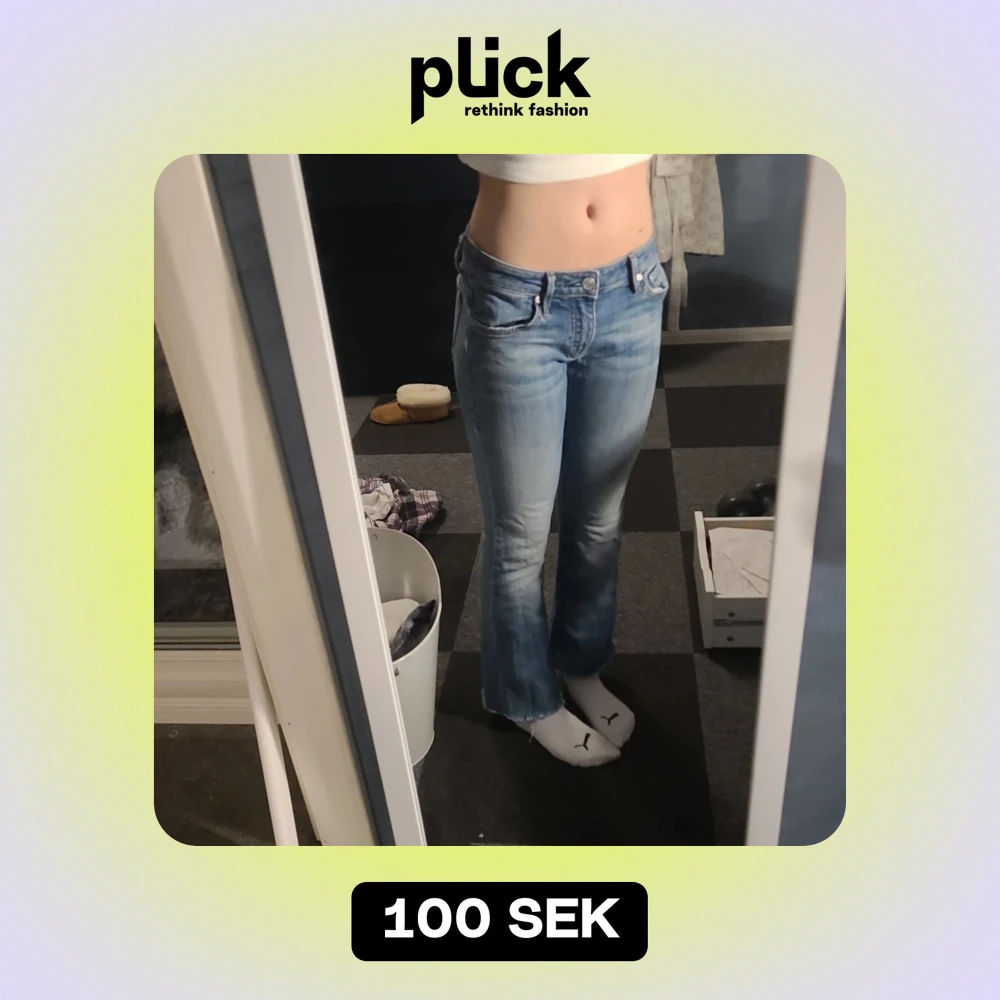 Ljus blå low waist bootcut jeans. Fint skick utom slitningar vid inre låren, det sys dock lätt igen och det kan jag göra innan paketer skickas iväg om så önskas. Pris kan diskuteras och om du undrar något är det bara att fråga. 💕