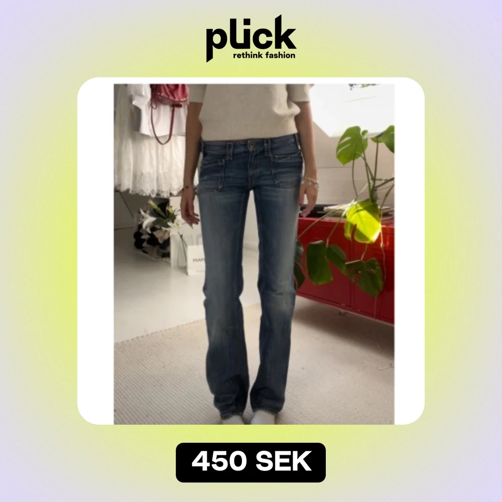 Super snygga och trendiga jeans från diesel💗💗 Midjemåttet:80cm Innerbenslängden: 86 Är insydda på sidorna vilket skapar som en liten buckla (se sista bilden) jag är dock övertygad om att man kan sy om det så att det blir gjort bättre💗