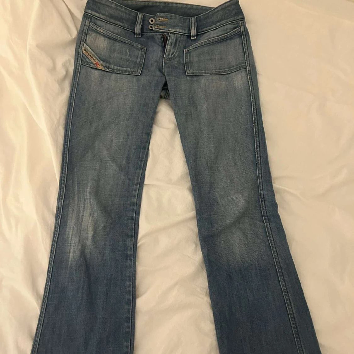 Säljer dessa snygga disel jeans. Dom är bootcut och dom är ljusblå även fast de ej syns så bra på bilden. De står ingen storlek i dom