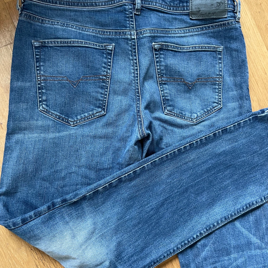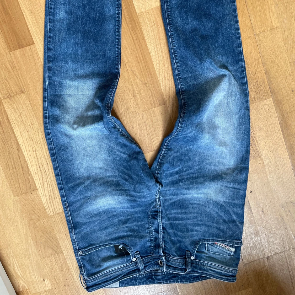 Blå jeans från Diesel med snygga slitningar och tvättade detaljer.