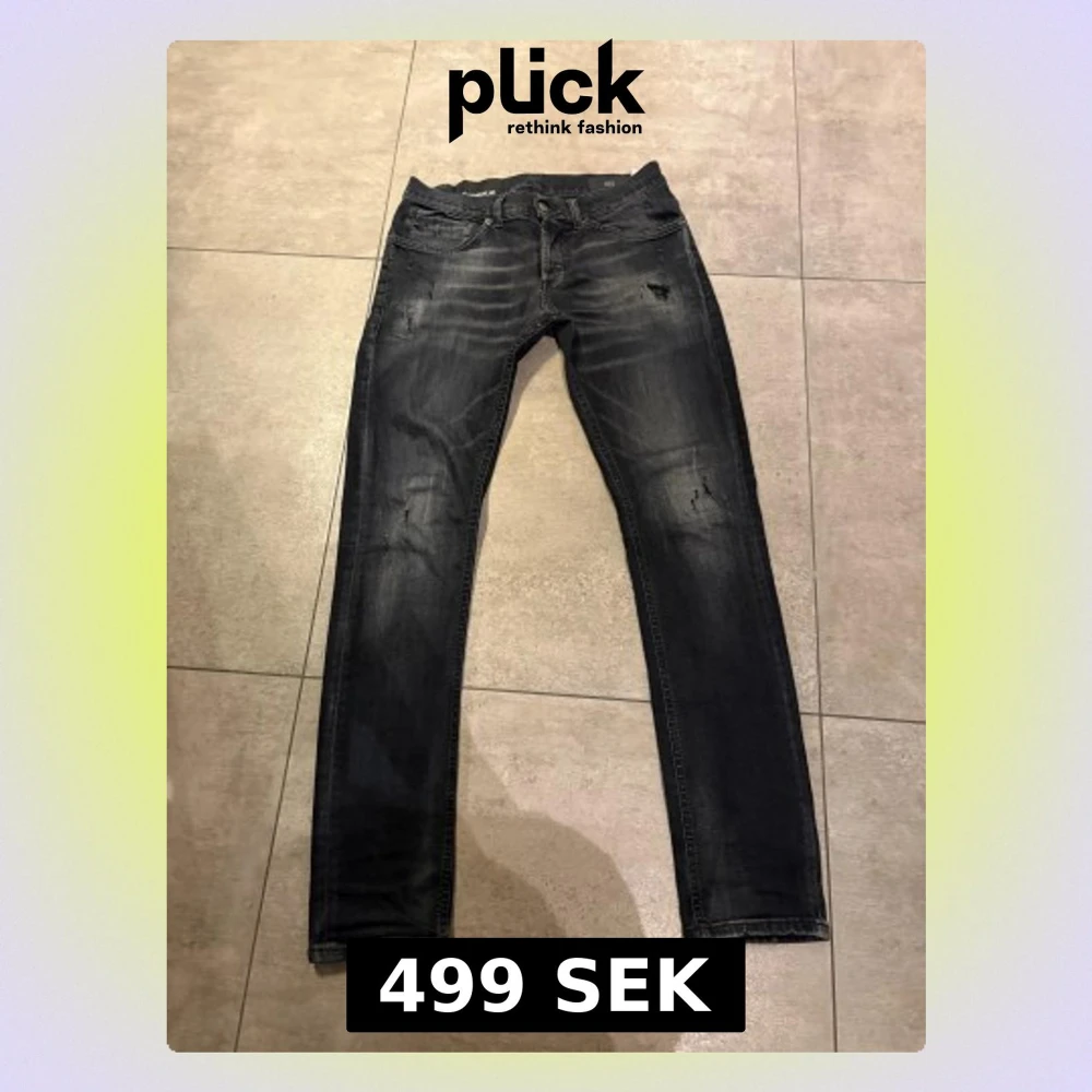 Svarta dondup jeans i modellen George storlek 32. Midjan är 38cm och längden är 101cm. Ända defekten att de sprack i skrevet men de var enkelt att sy igen så de är inget man märker.