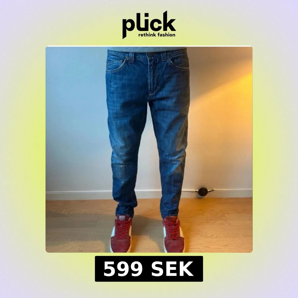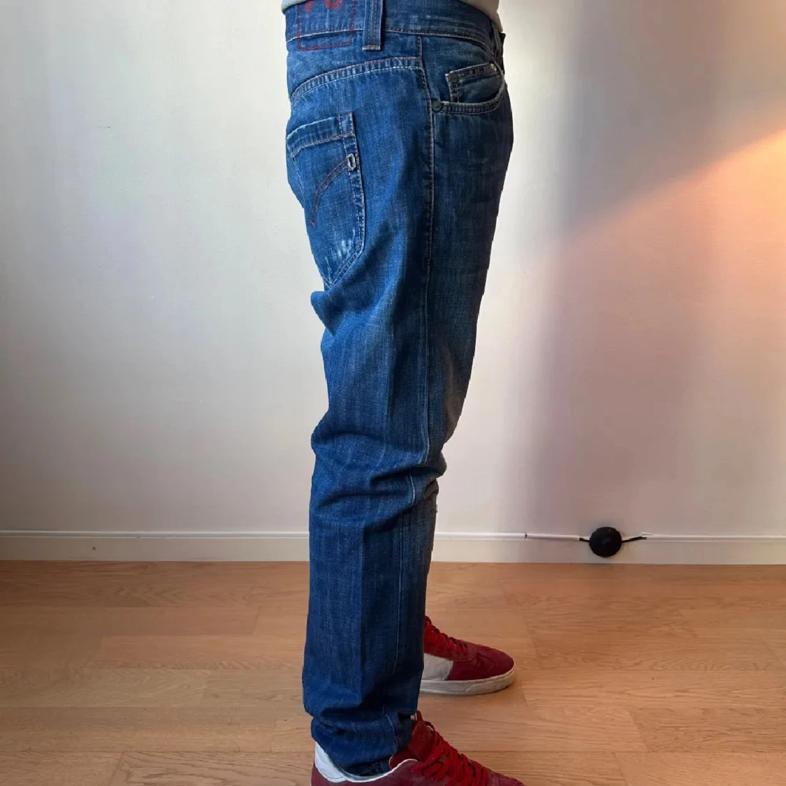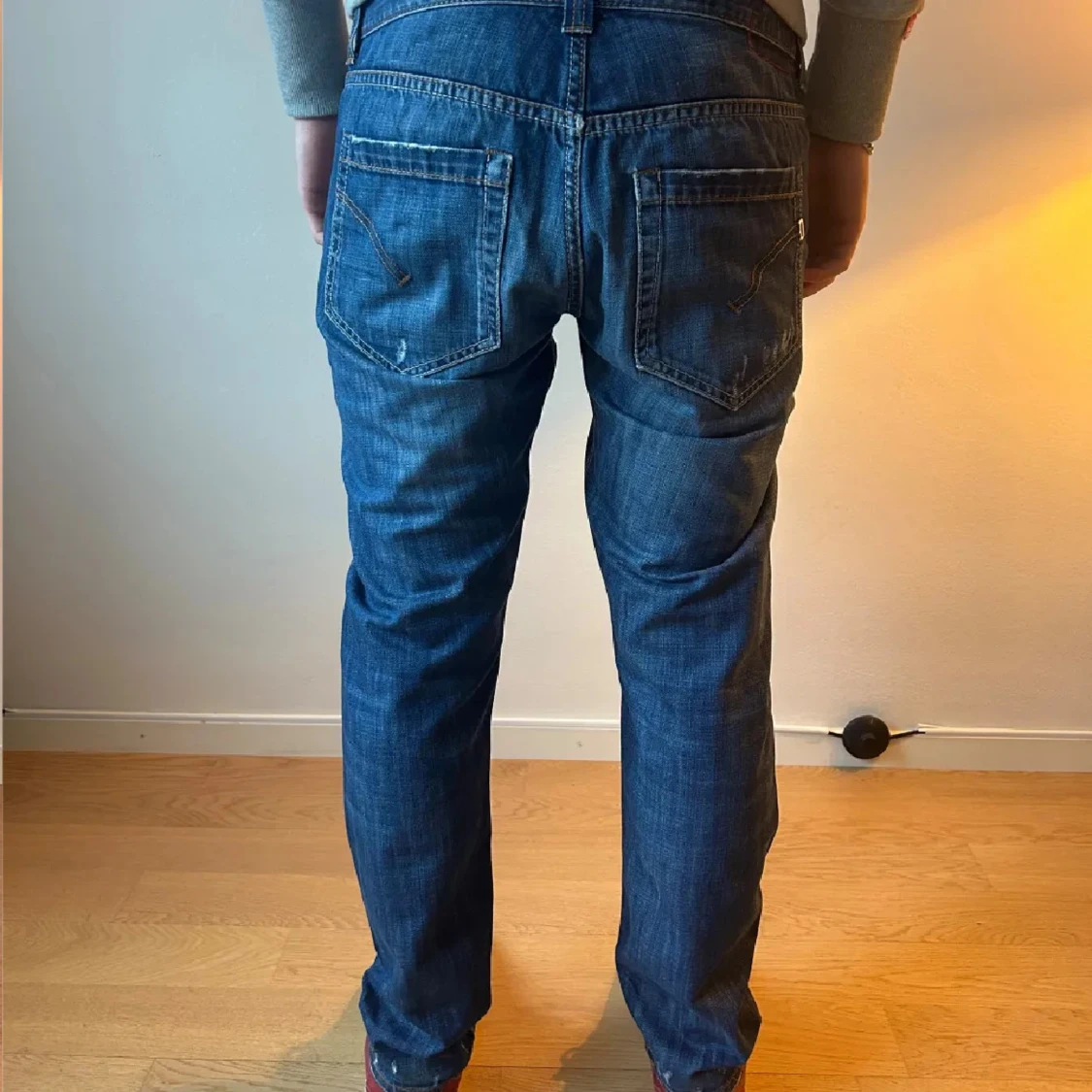 Snygga Dondup Jeans i färgen denim blå. Dom är i storleken 34, om du väger runt 68-75kg passar dom perfekt. skicket är bra, tecken på användning men inget man tänker på. Skriv gärna vid funderingar eller nått, pris är ej hugget i sten