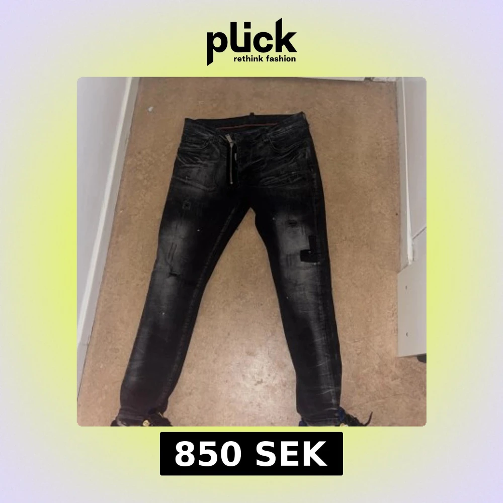 Snygga svarta skinny jeans från Dsquared2 med slitna detaljer och cool tvätt. Byxorna har klassisk femficksdesign, dragkedja och Dsquared2-logga på bakfickan. Perfekta för dig som gillar streetstyle och vill sticka ut med en edgy look.
