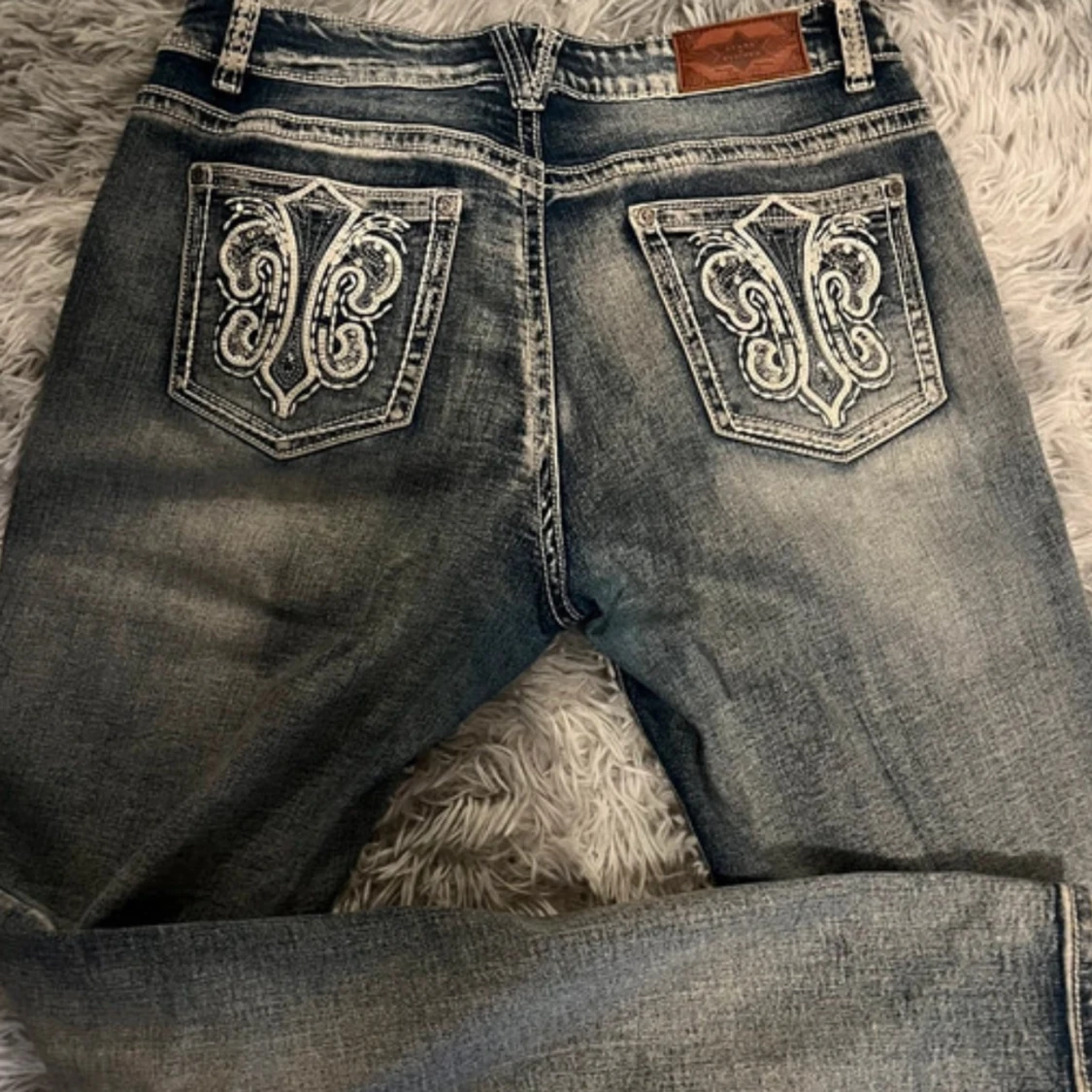 Nypris 1200kr!! Superfina stars & stripes jeans! Knappt använda, behöver tyvärr sälja då dem är för små för mig. Detaljerna på baksidan är otroliga och jeansen är raka/bootcut passform. Storleken på lappen är W32, och är normal i storleken.